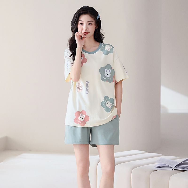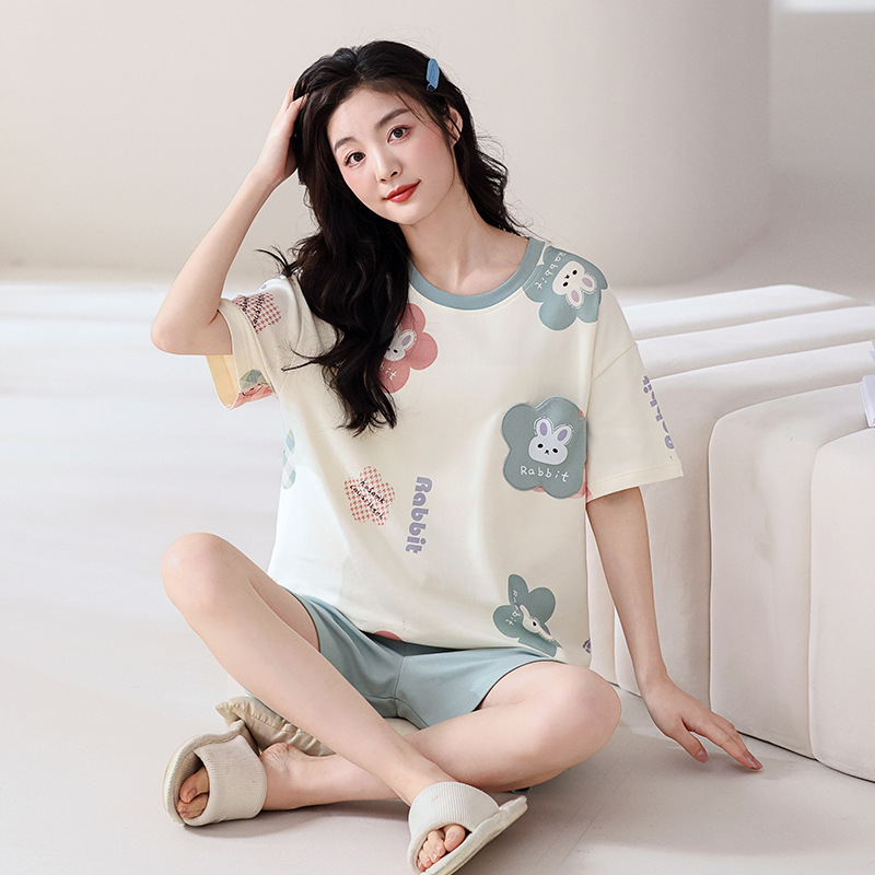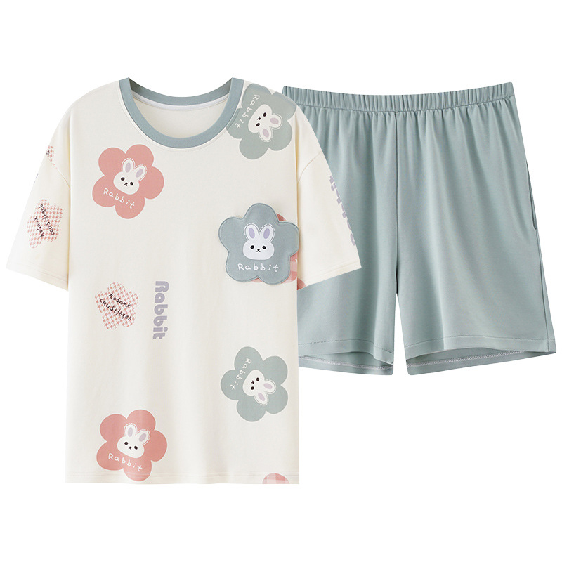 带胸垫睡衣女夏季纯棉薄款短袖卡通少女全棉外穿家居服家居服套装