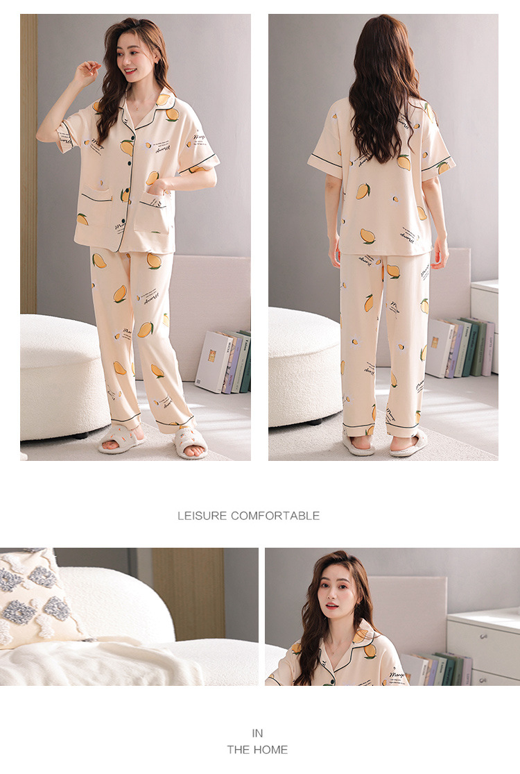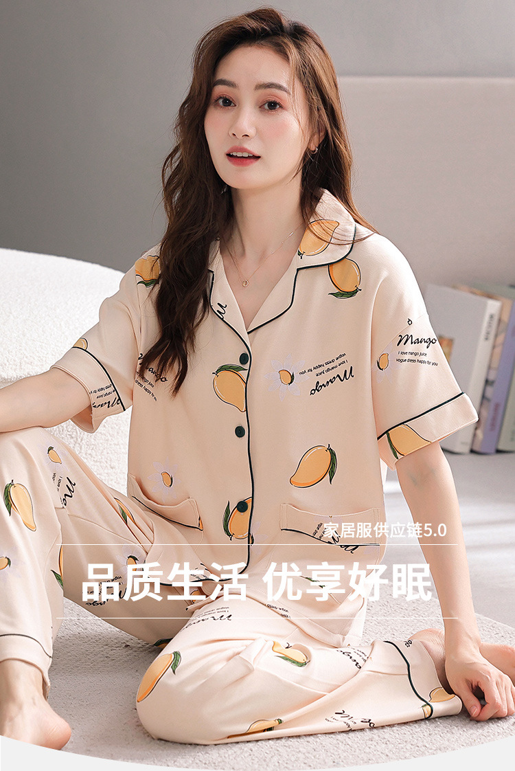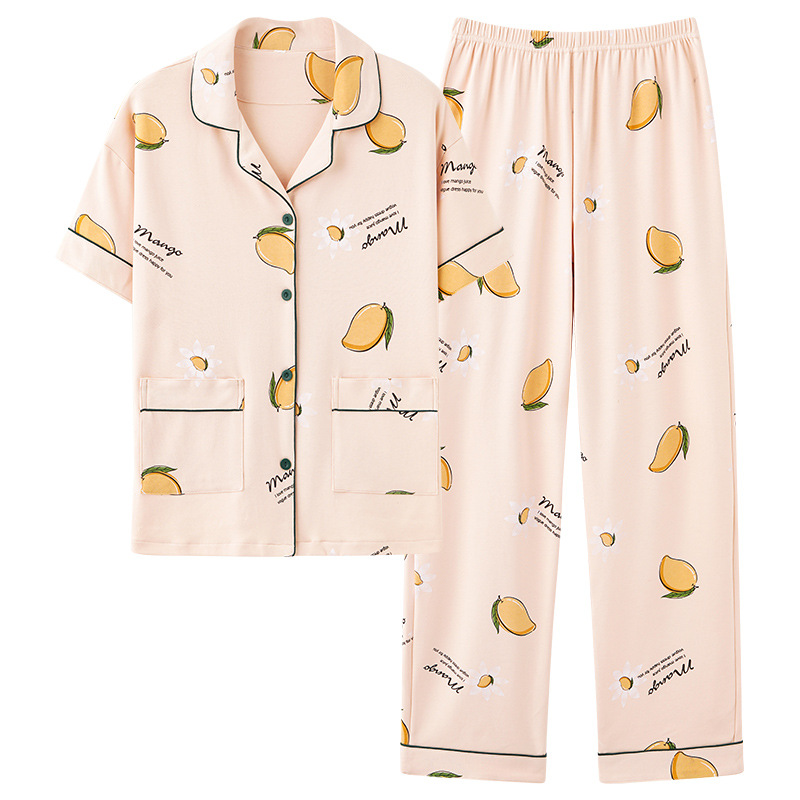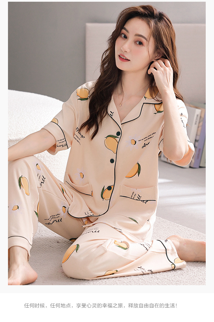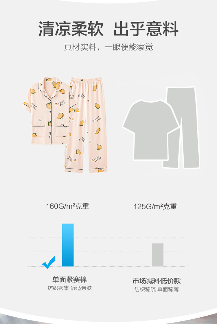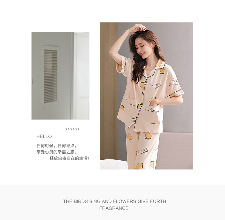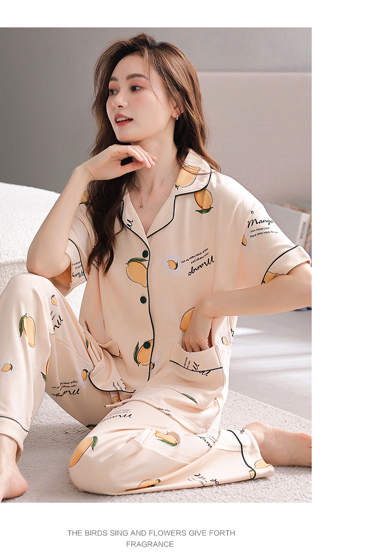 睡衣女夏季纯棉薄款短袖女士甜美开衫全棉加大码可外穿家居服套装