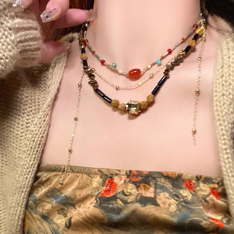 敦煌新中式天然石玛瑙串珠项链女复古民族风小众毛衣链国风锁骨链