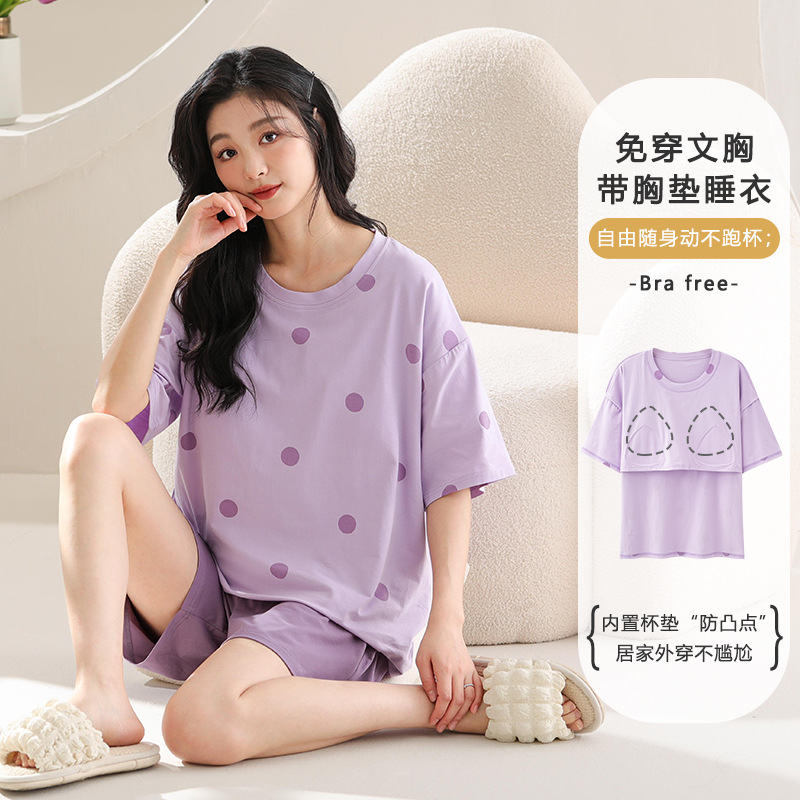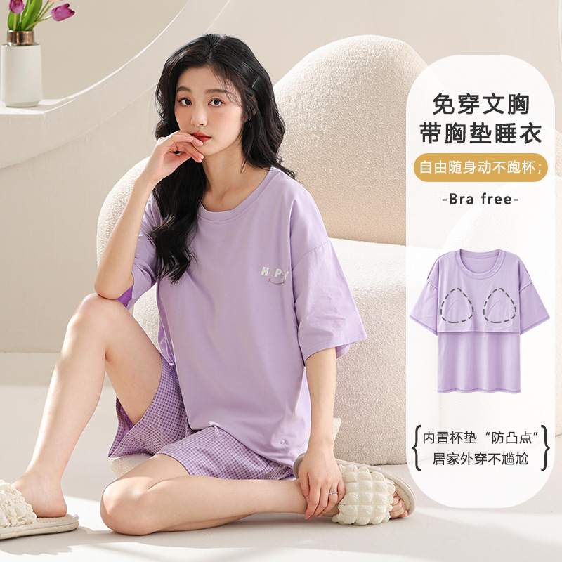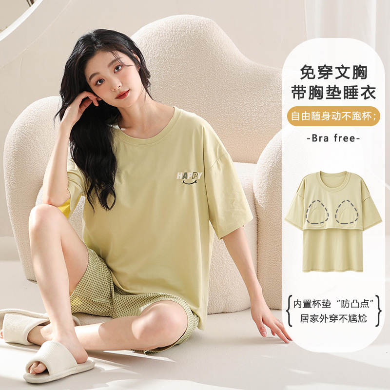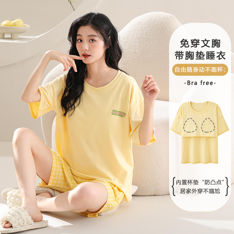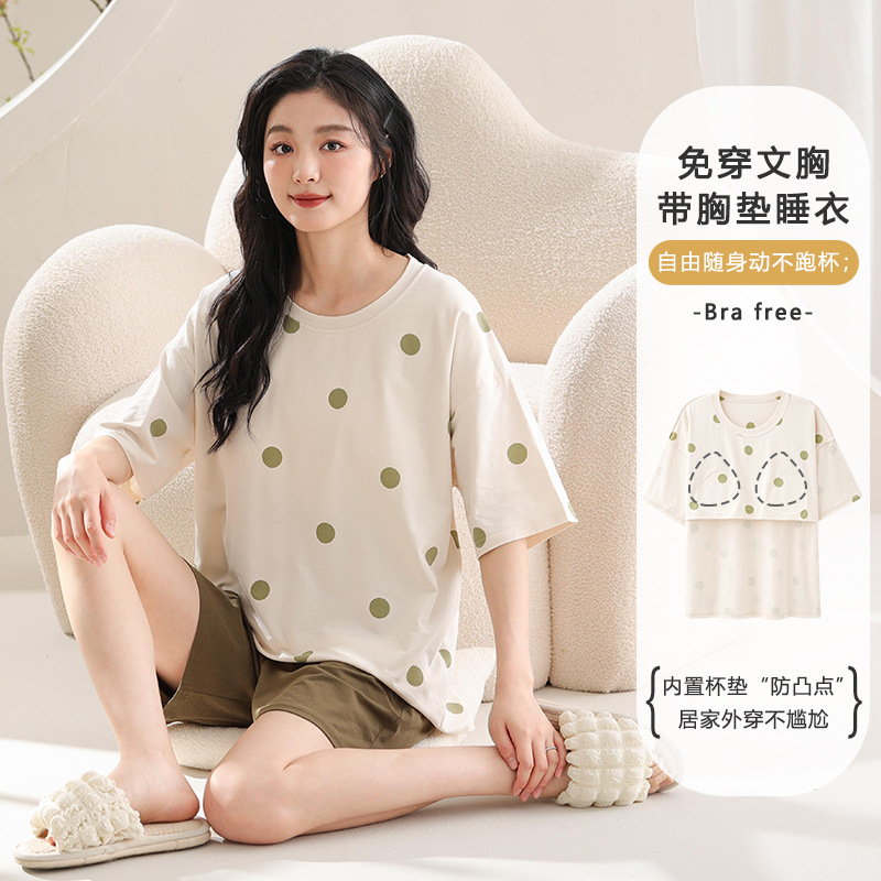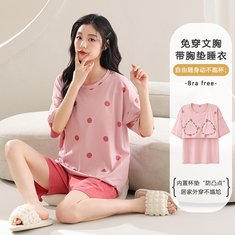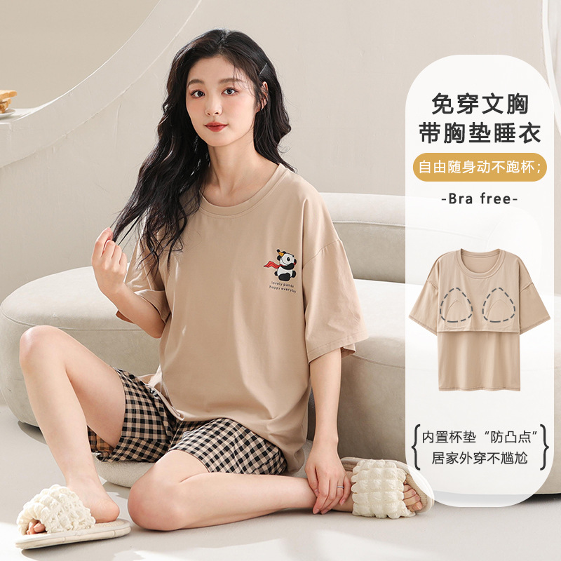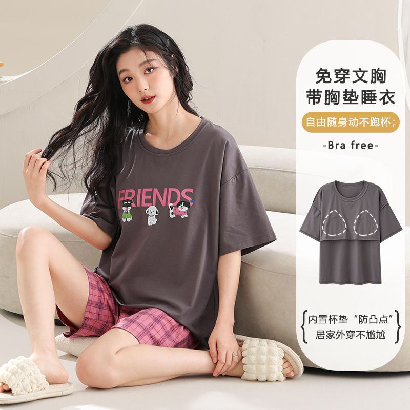 带胸垫睡衣女夏季莫代尔短袖年新款少女士学生卡通家居服夏天