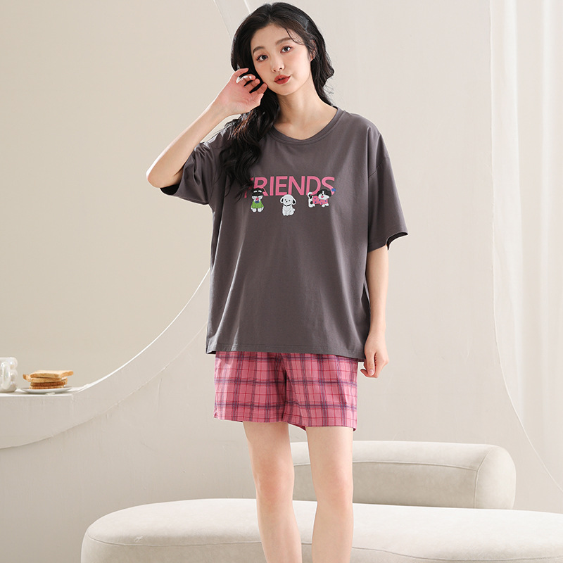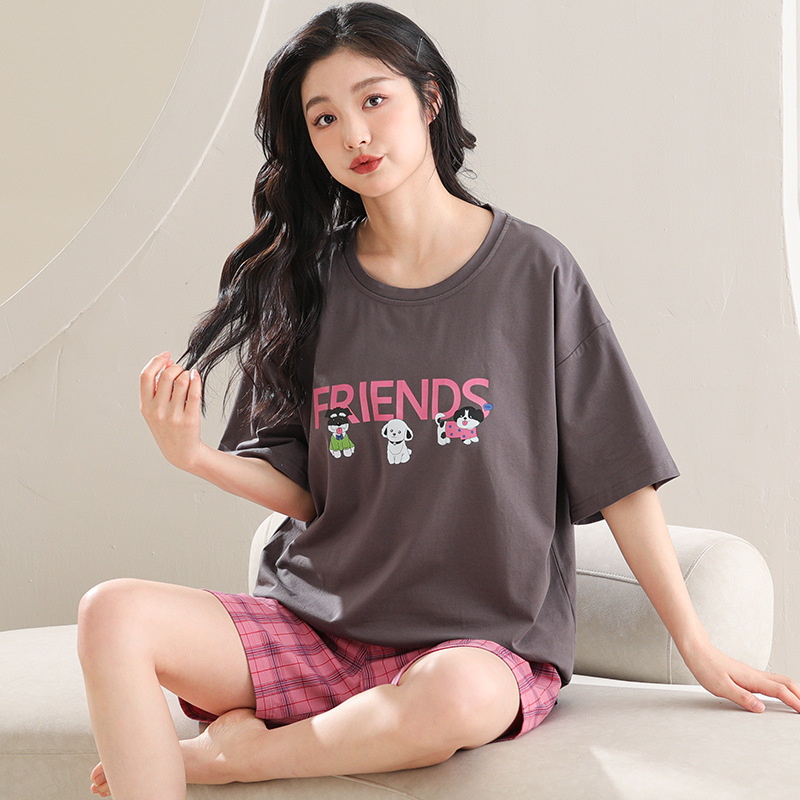 莫代尔睡衣女夏季短袖短裤年新款卡通少女士带胸垫一体家居服