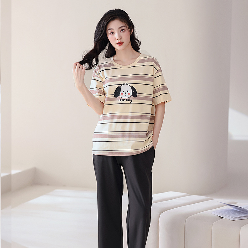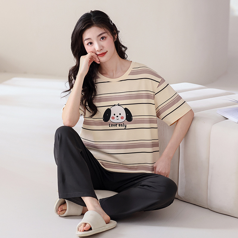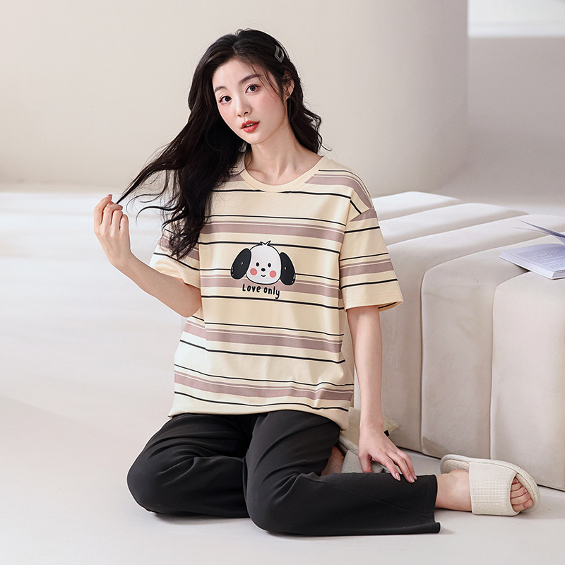 带胸垫一体睡衣女士夏季纯棉短袖卡通可外穿家居服夏天年新款