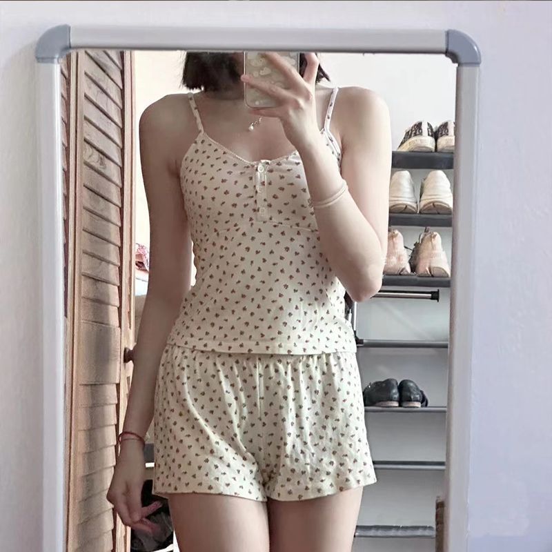 泰国吊带碎花内搭打底衫秋夏新款辣妹短款上衣无袖可爱甜美上衣女