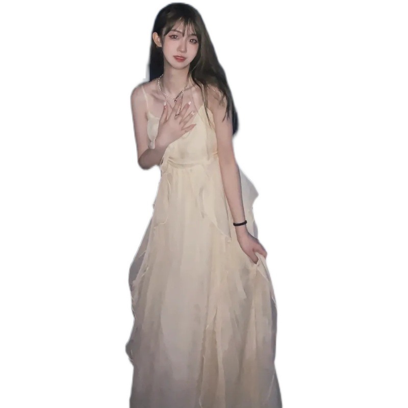 旅游穿搭拍照法式沙滩裙女海边度假超仙气质长款吊带连衣裙夏