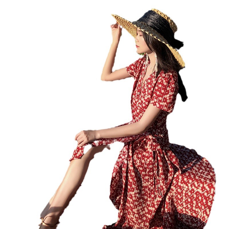 沙滩裙女海边度假显瘦长裙仙泰国三亚巴厘岛海岛复古雪纺连衣裙