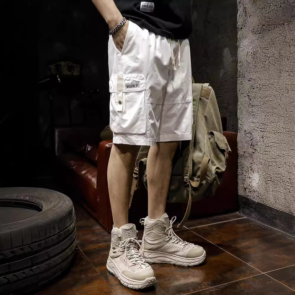 潮牌高级白色工装短裤男夏季薄款宽松直筒多袋男士中裤休闲五分裤