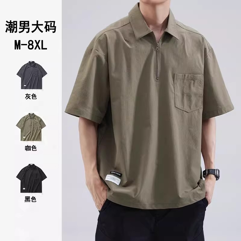 夏季新款山系polo衫短袖男士美式复古潮牌大码宽松半拉链翻领T恤