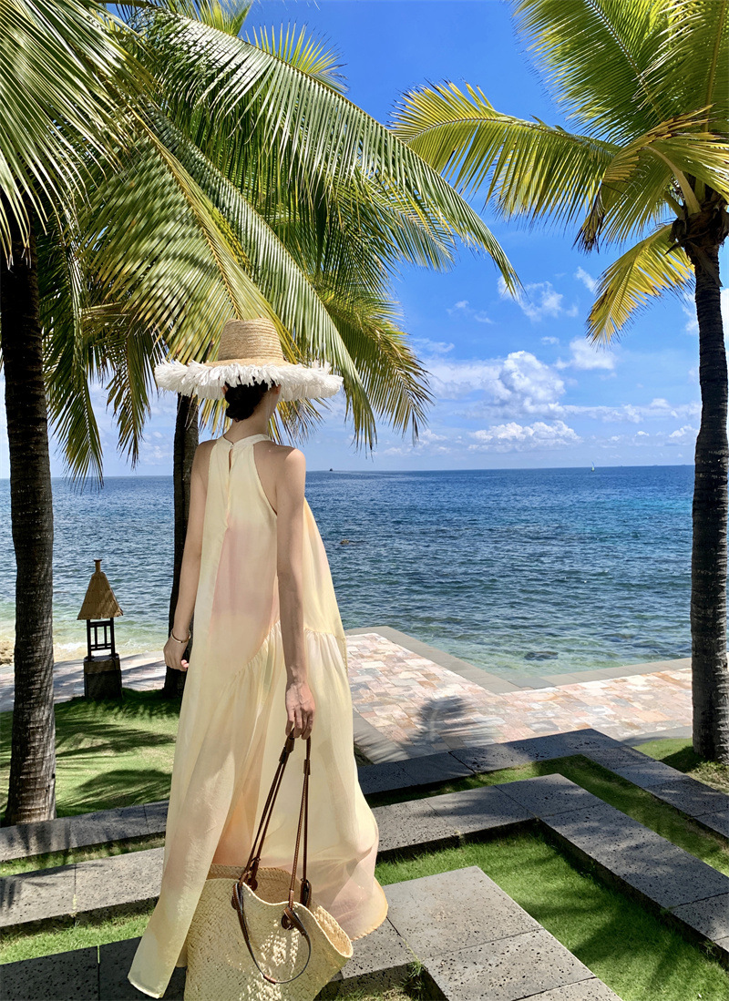 高品质黑色方领无袖马甲女夏季时尚新设计感小众镂空开叉时尚上衣