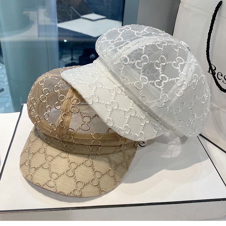 夏季新款蕾丝镂空透气八角帽女韩版出游英伦时尚显脸小贝雷帽网帽