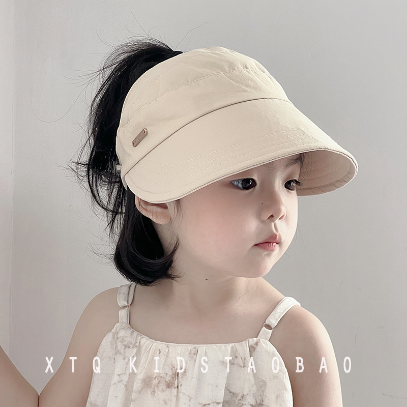 韩版儿童空顶防晒帽可扎马尾男女宝宝遮阳帽防紫外线太阳帽户外潮