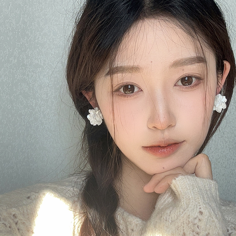 法式复古白色花朵耳环春夏高级感小众耳钉女新款