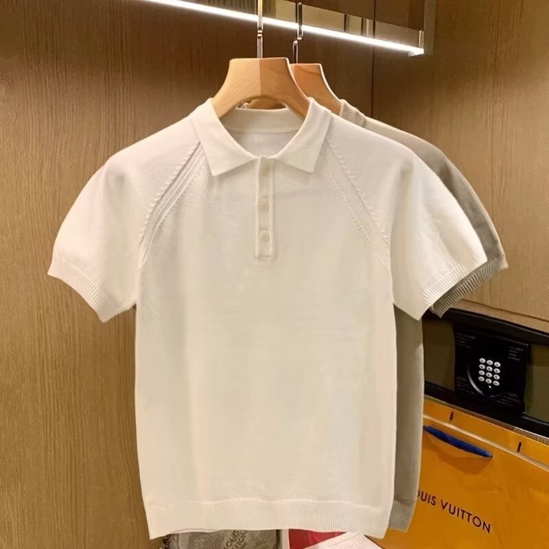 针织短袖Polo衫男士夏季新款T恤流行轻熟冰丝翻领半袖体恤男