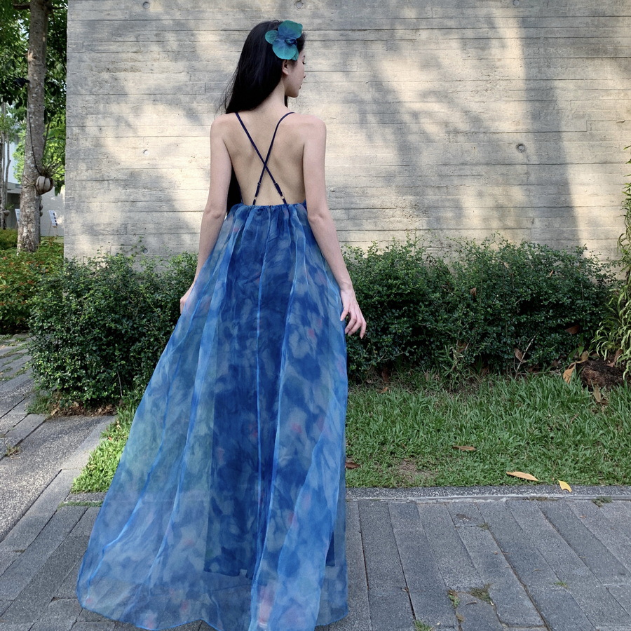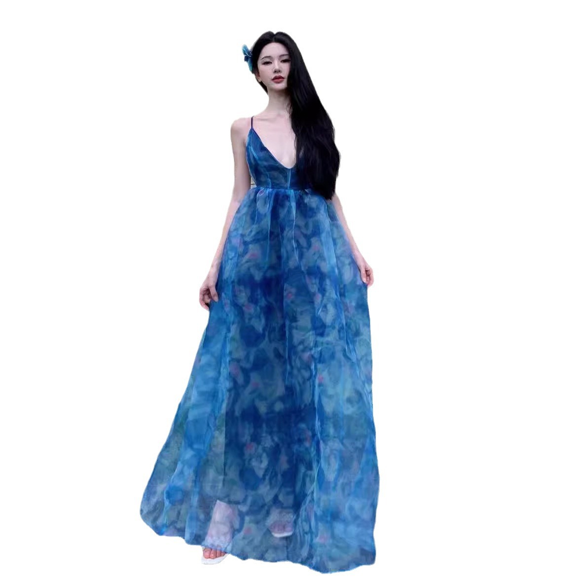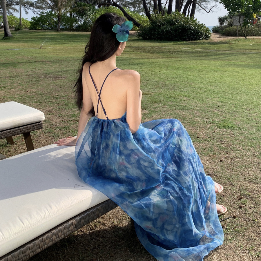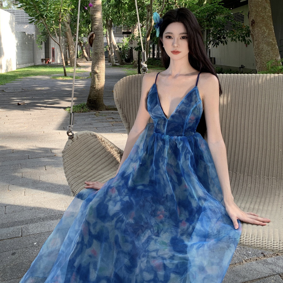 纯欲碎花吊带连衣裙女夏桔梗裙长裙海边度假沙滩裙子仙女裙