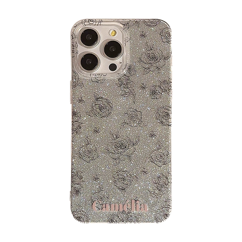 闪粉玫瑰iphone15手机壳14复古艺术风15promax硅胶13适用11/12