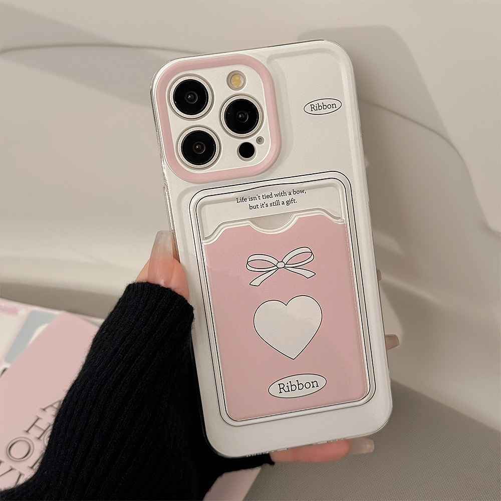 苹果iPhone16韩系粉色爱心卡包适用苹果15promax手机壳iphone14小众全包13软