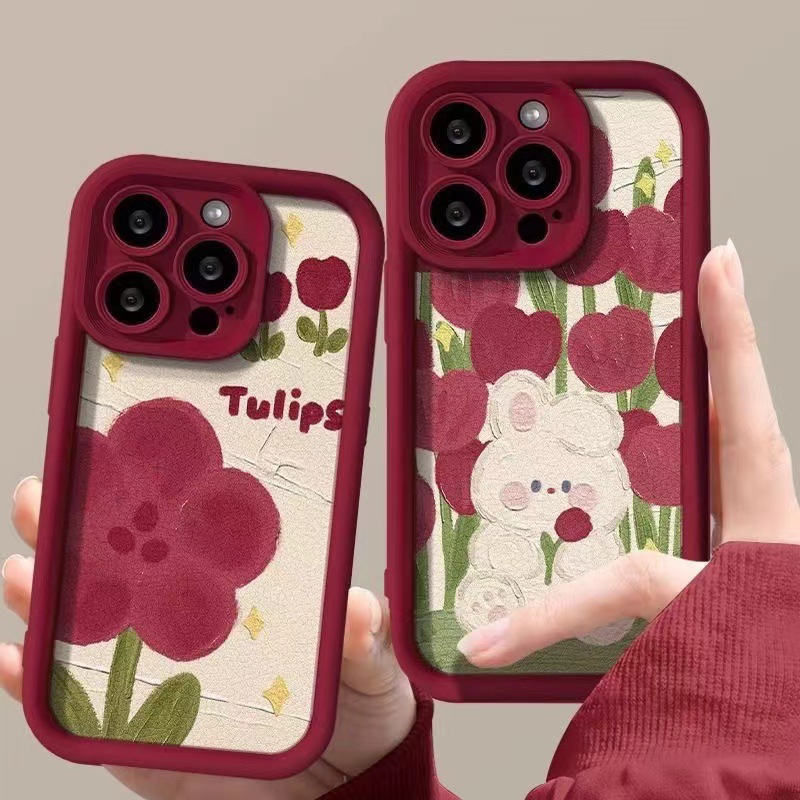 郁金香兔子适用苹果15手机壳iPhone14pro高竹13个性12promax全包7