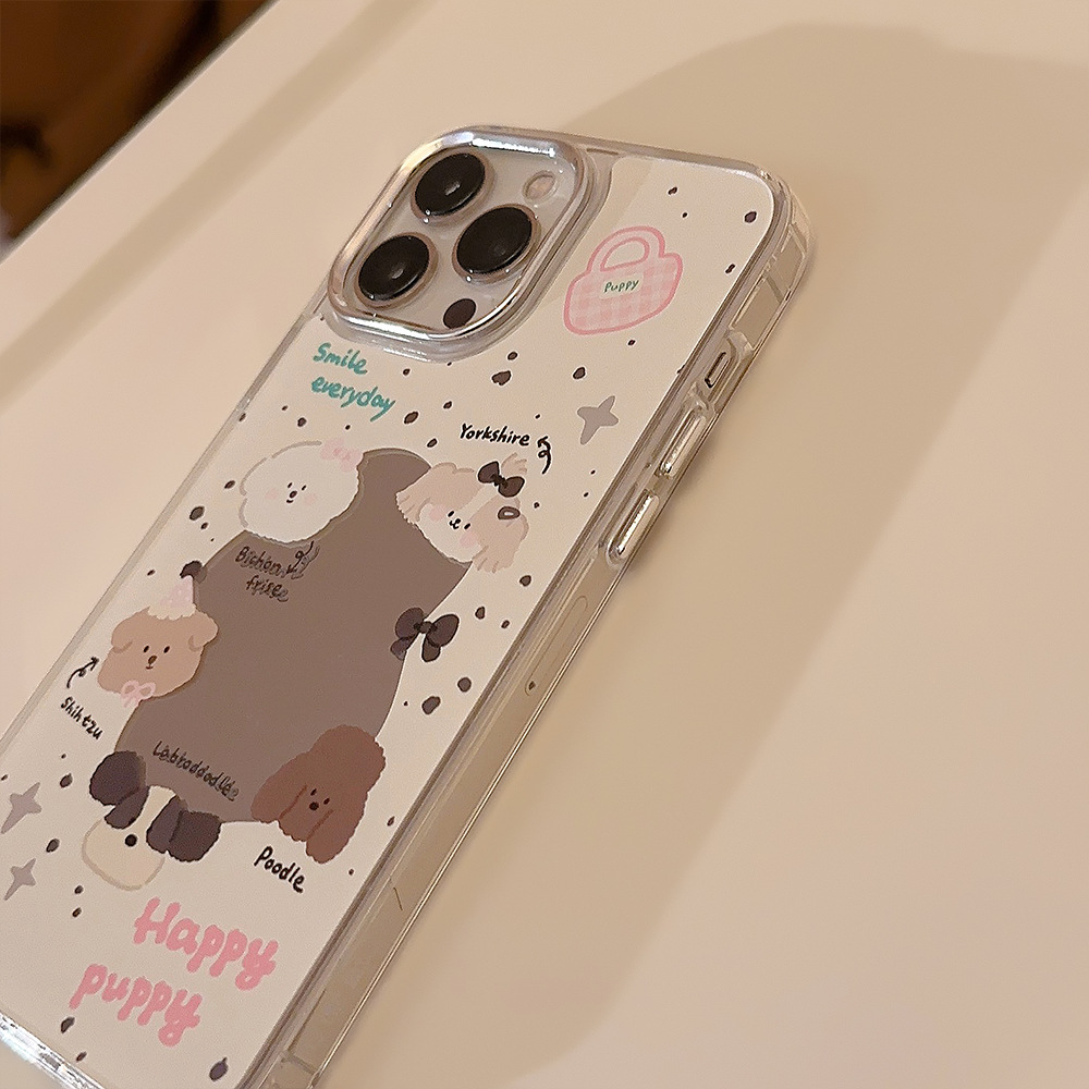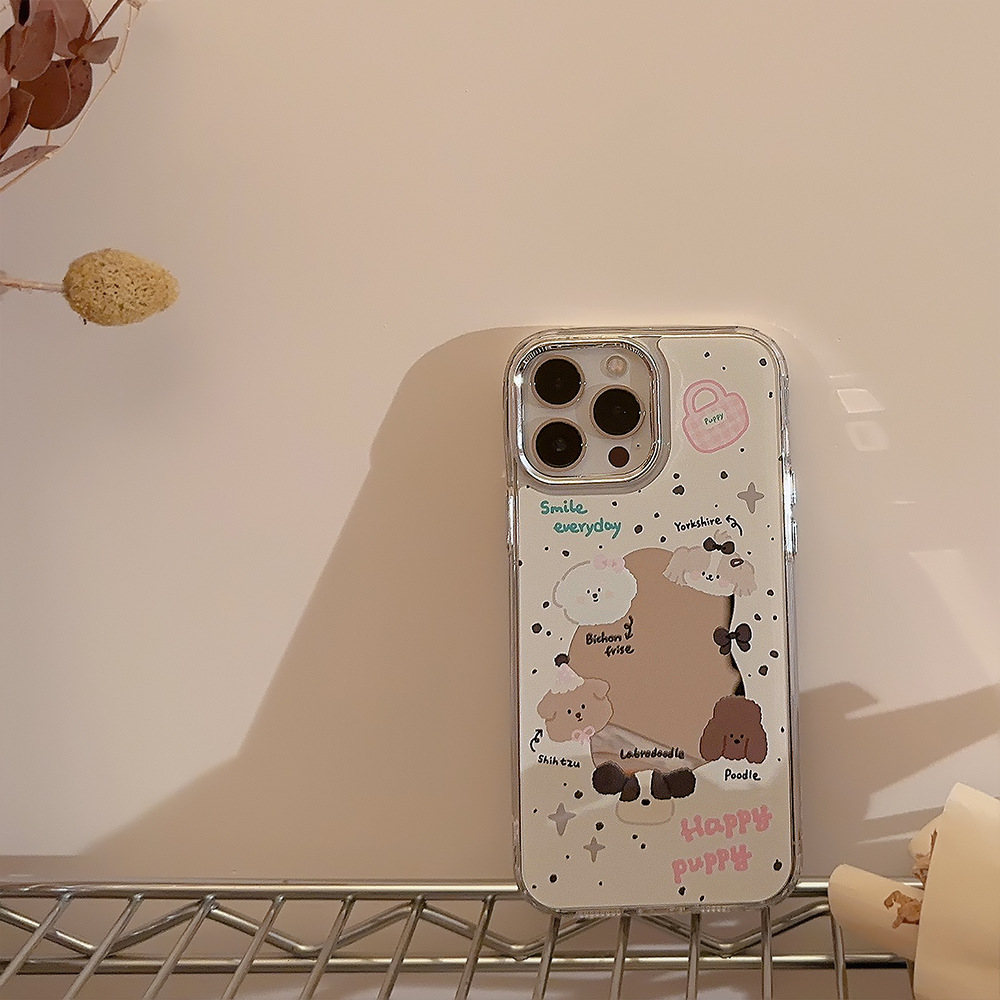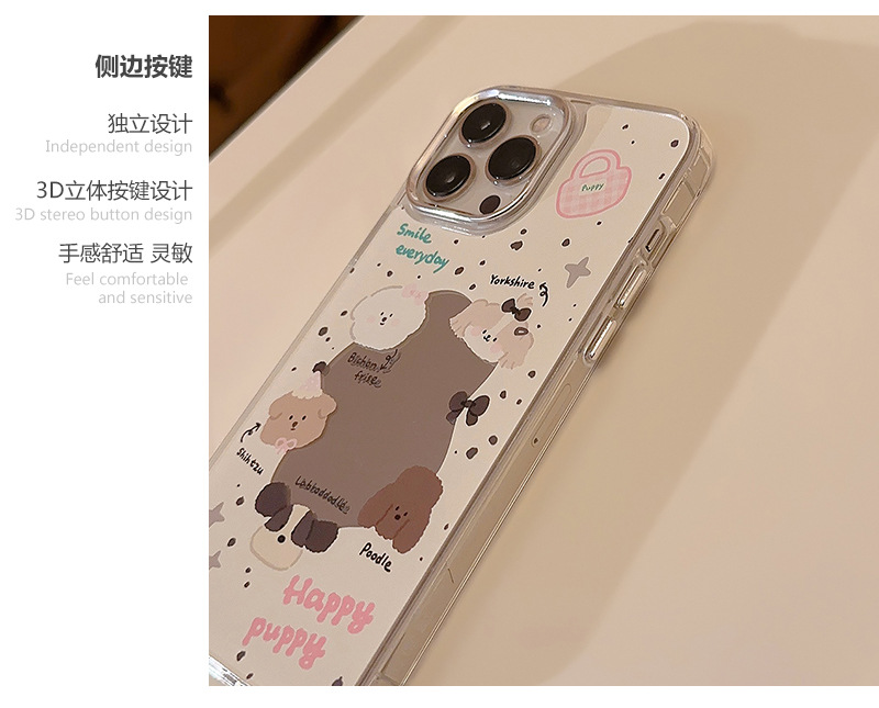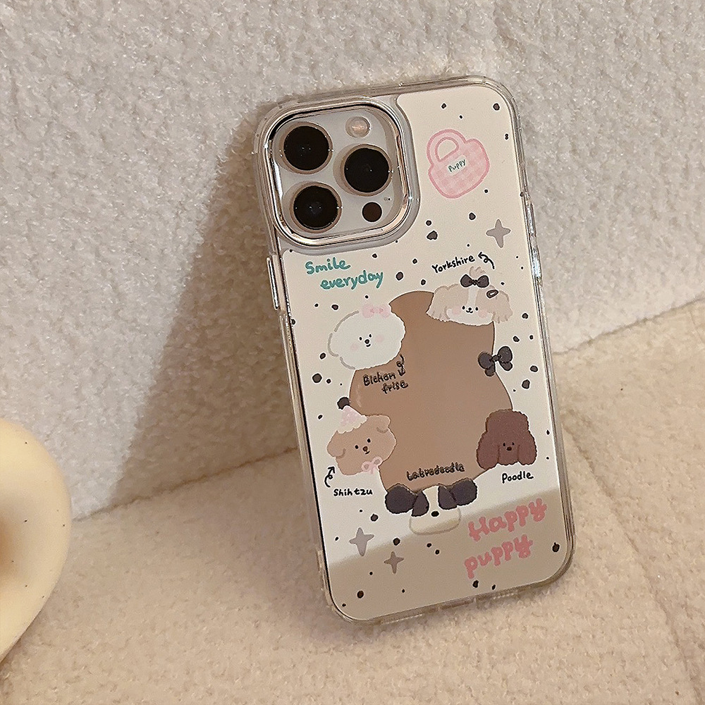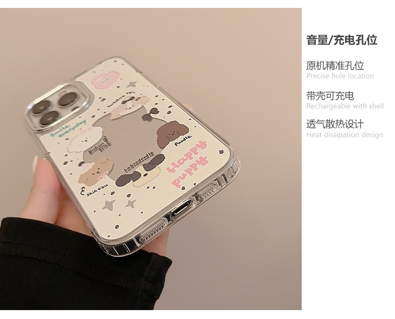 甜美ins小狗iphone16适用15pro max苹果手机壳13电镀镜面11原创12