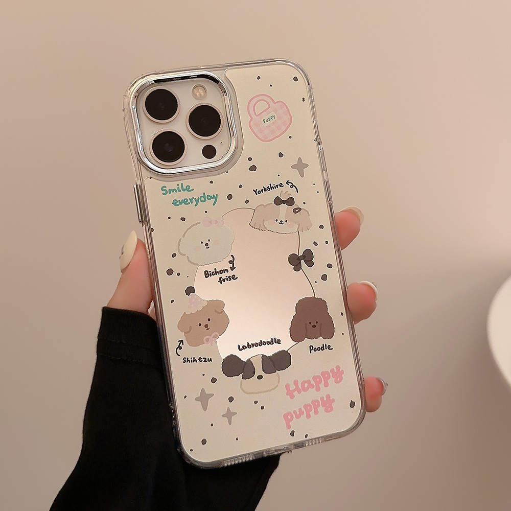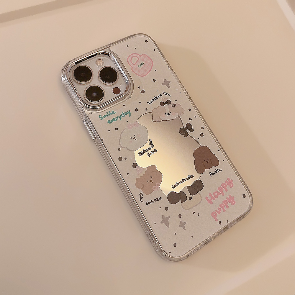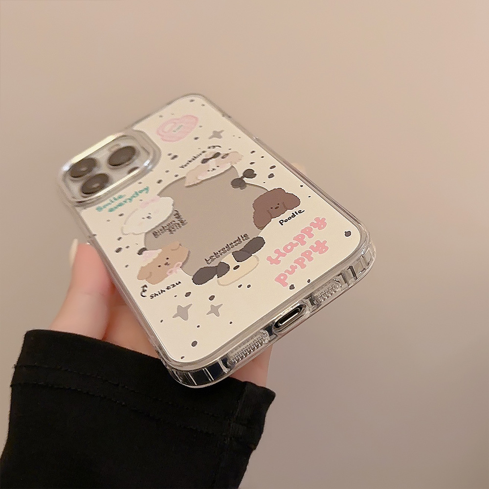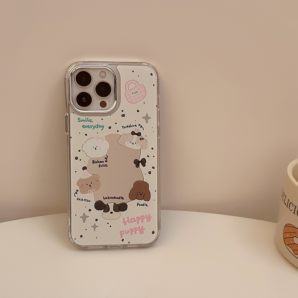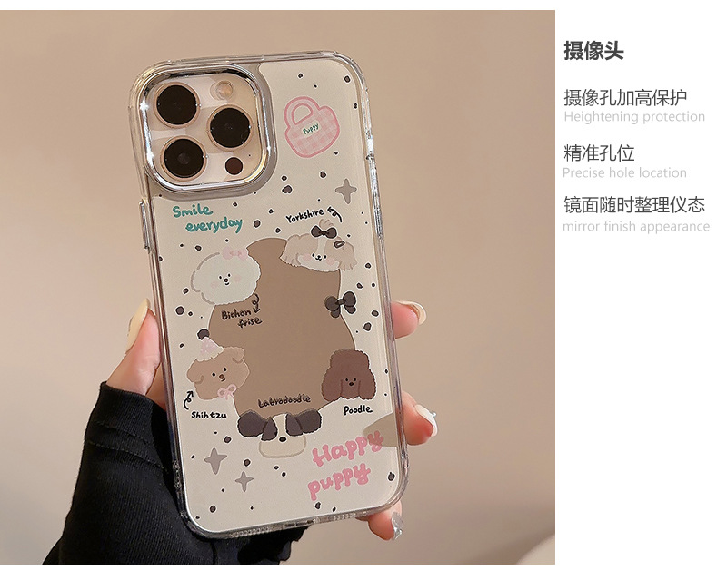 甜美ins小狗iphone16适用15pro max苹果手机壳13电镀镜面11原创12