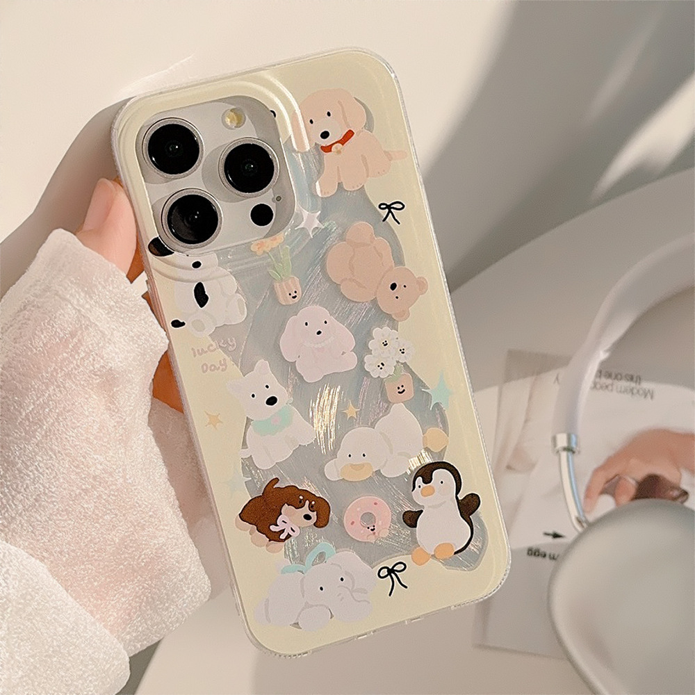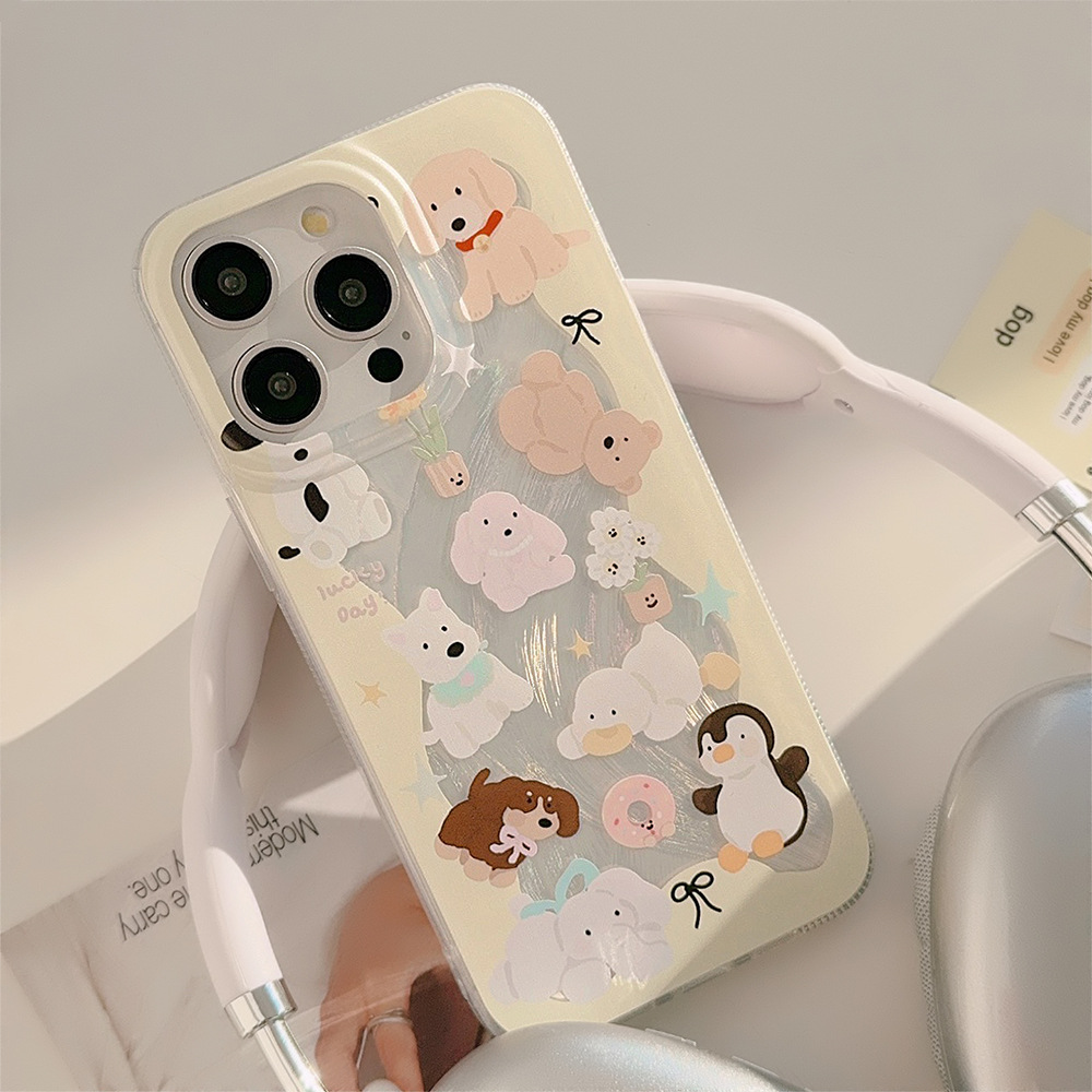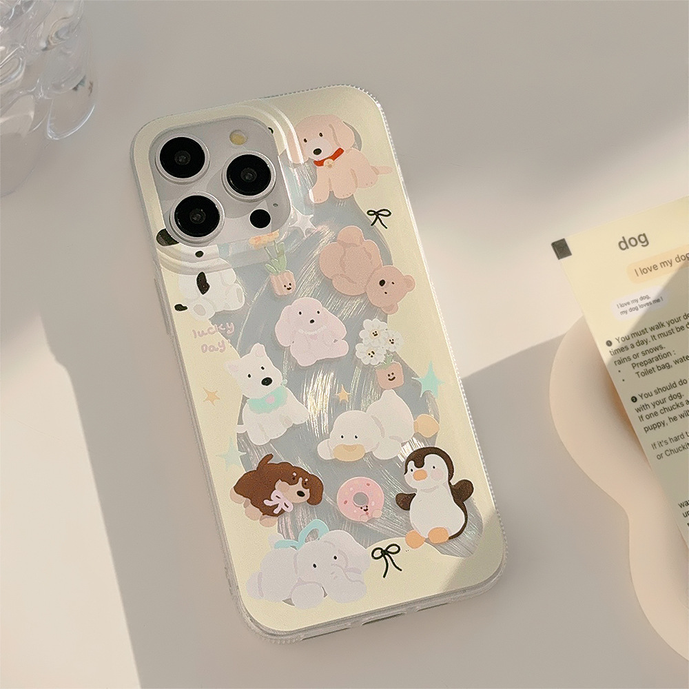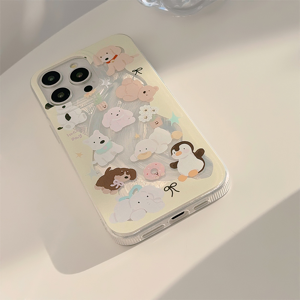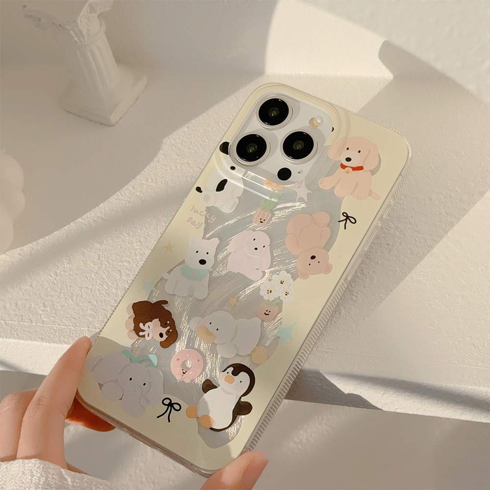 奶黄动物手机壳适用苹果16/15羽纱iphone13防摔12韩系卡通14promax