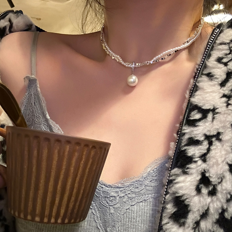 设计感碎银几两双层叠戴珍珠吊坠项链新款高级感颈链锁骨链