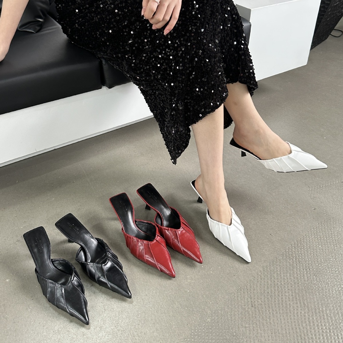 东大门尖头凉拖鞋女鞋包头皱褶懒人穆勒拖女新款高跟半拖鞋
