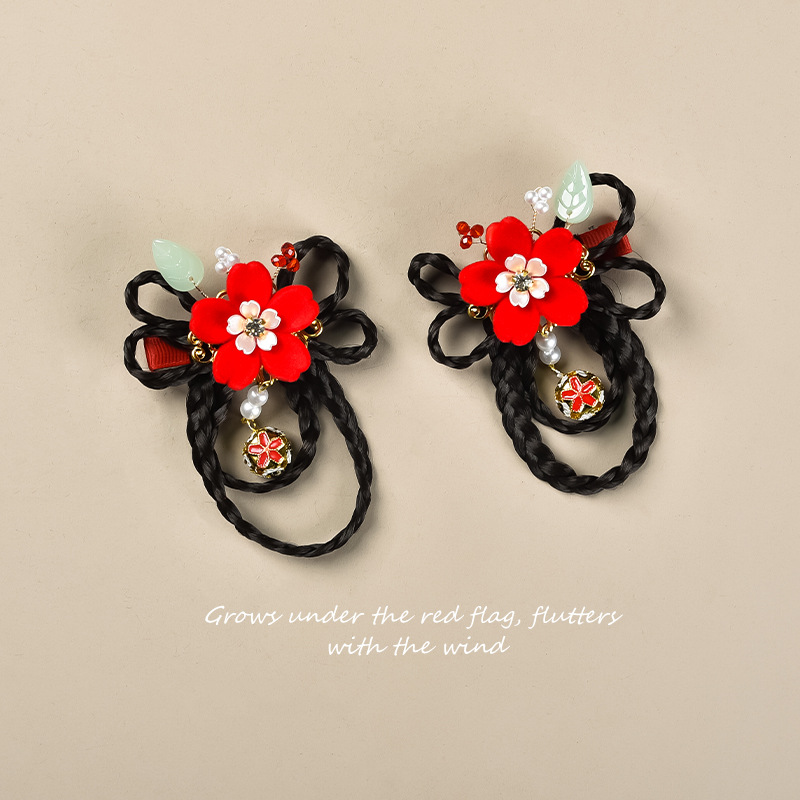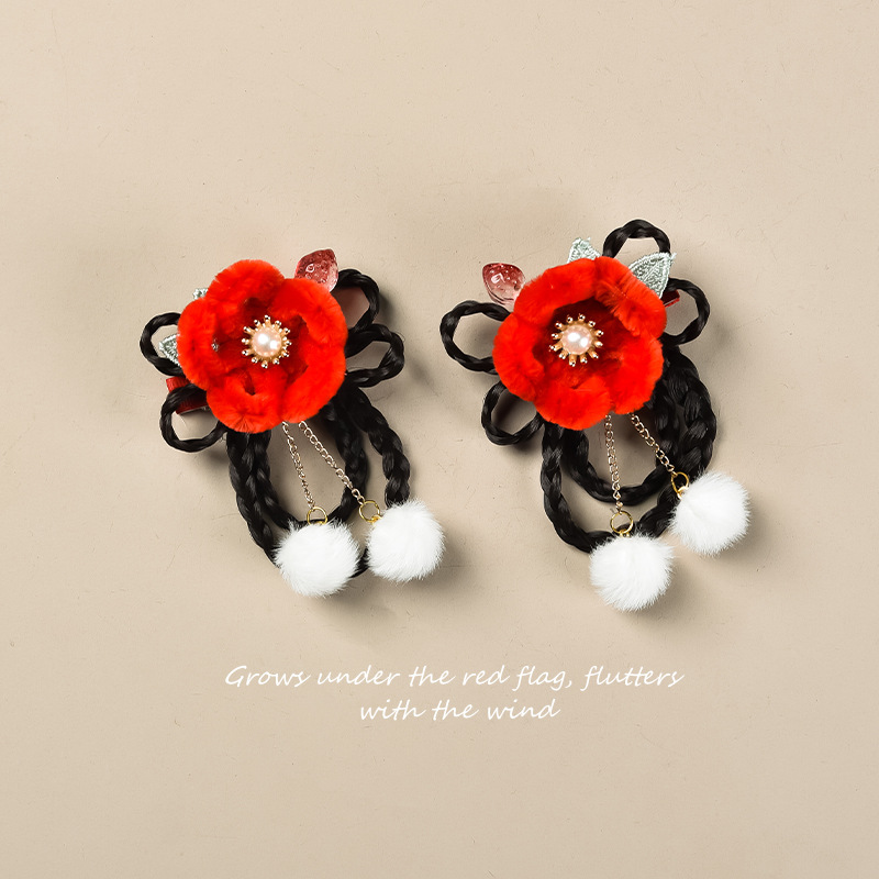 儿童中国风发饰女童古装步摇流苏发夹喜庆红色发卡汉服古风假发辫