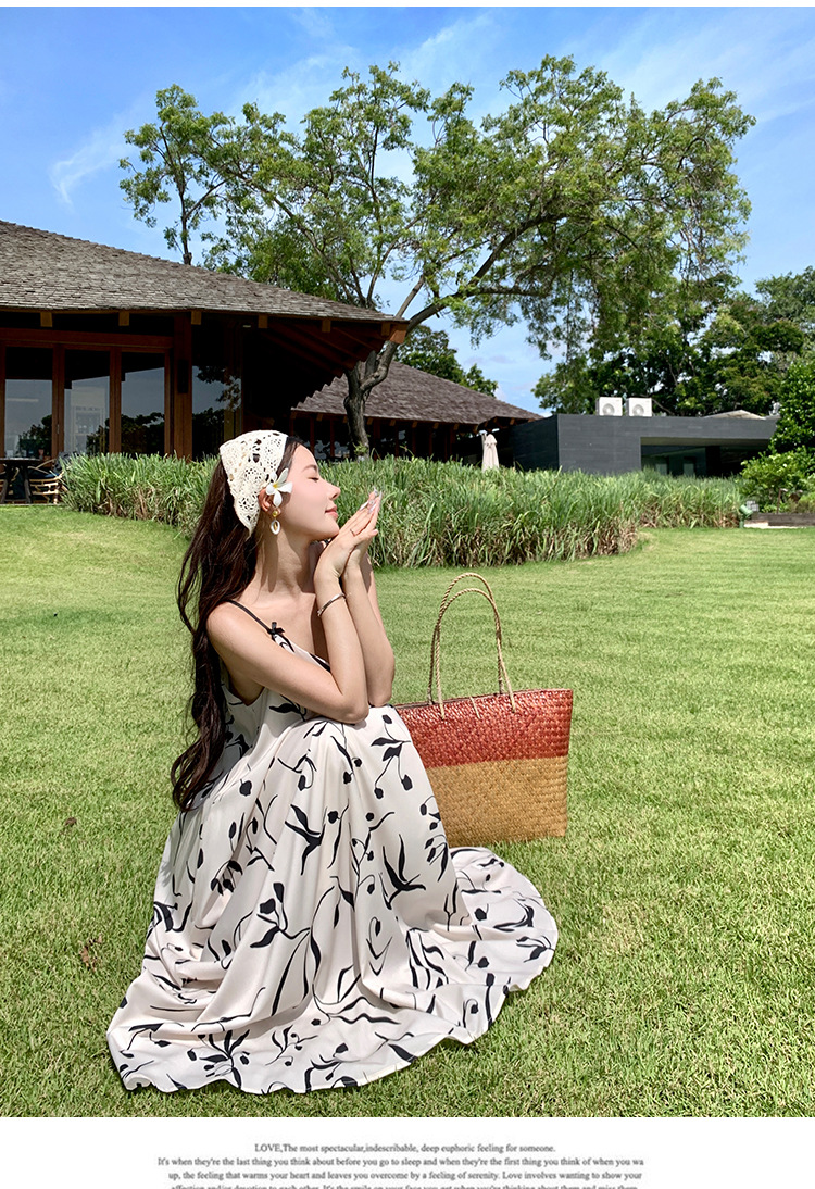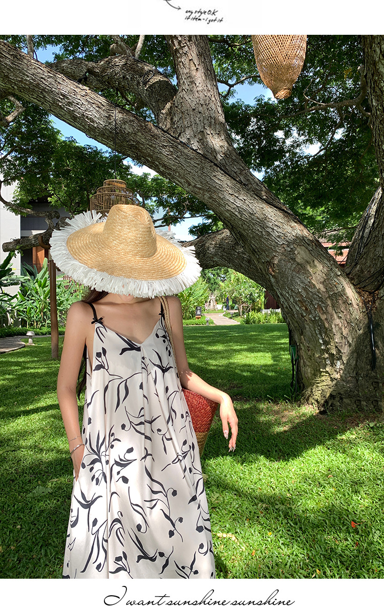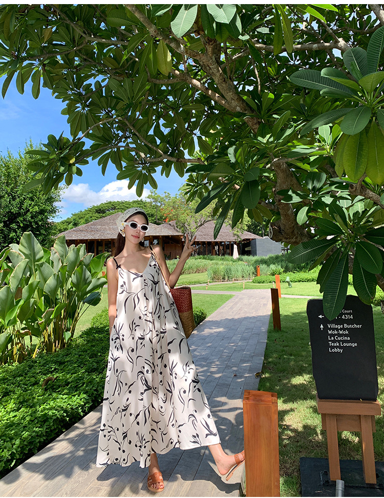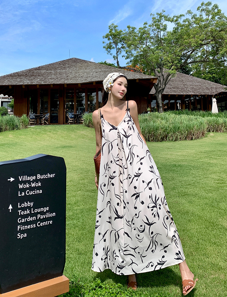 清冷宽松吊带连衣裙女夏季小个子度假碎花长裙气质显瘦沙滩