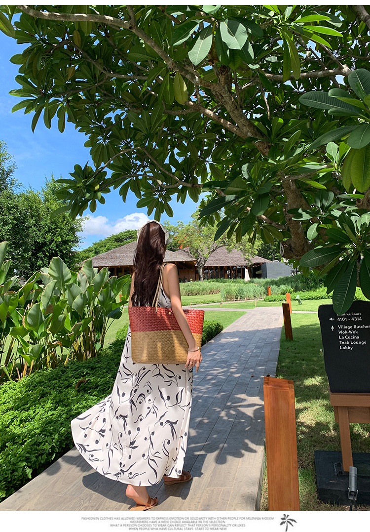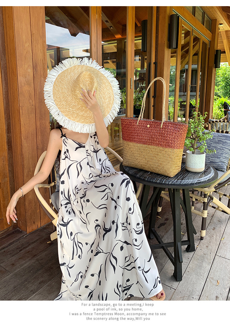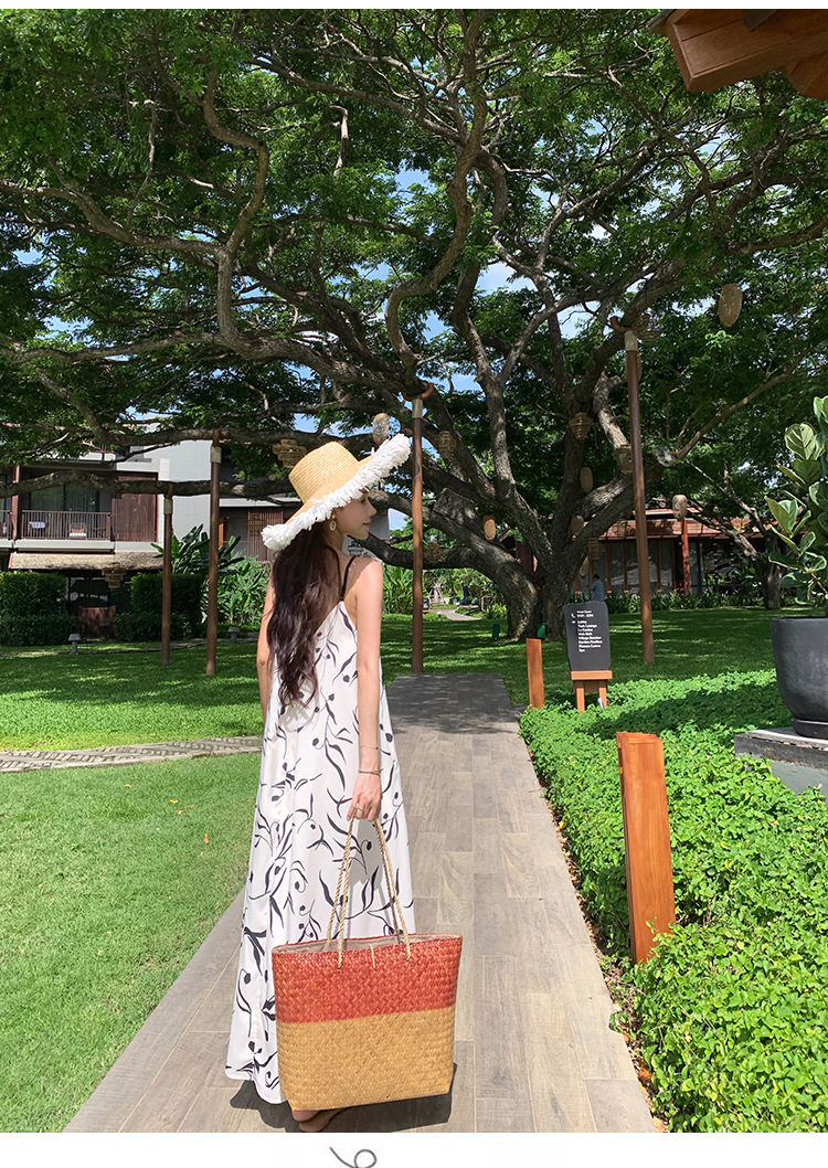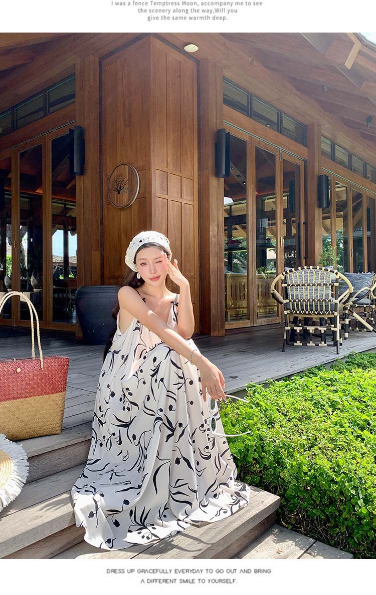 清冷宽松吊带连衣裙女夏季小个子度假碎花长裙气质显瘦沙滩