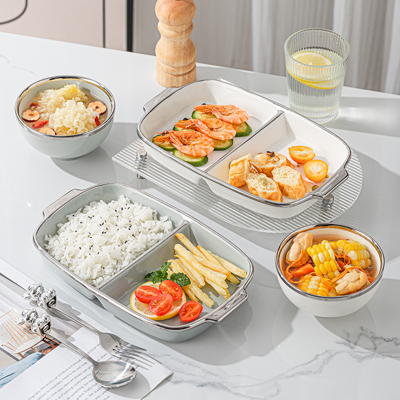 分格餐盘陶瓷大人减肥专用高级感轻奢分隔盘子两格餐盘减脂一人餐
