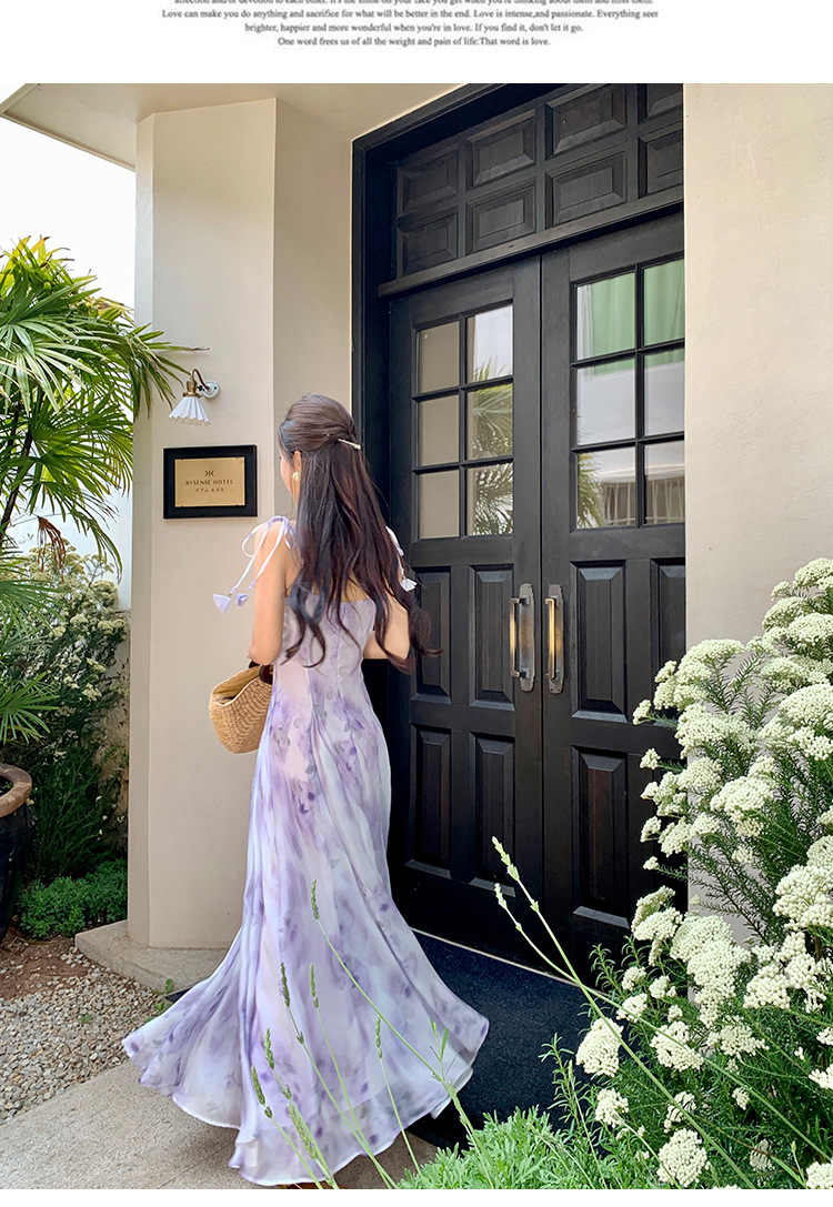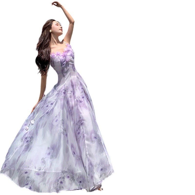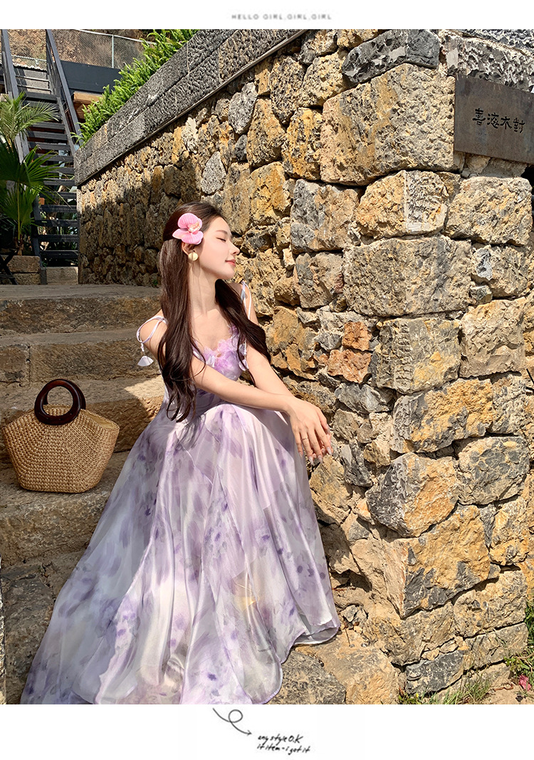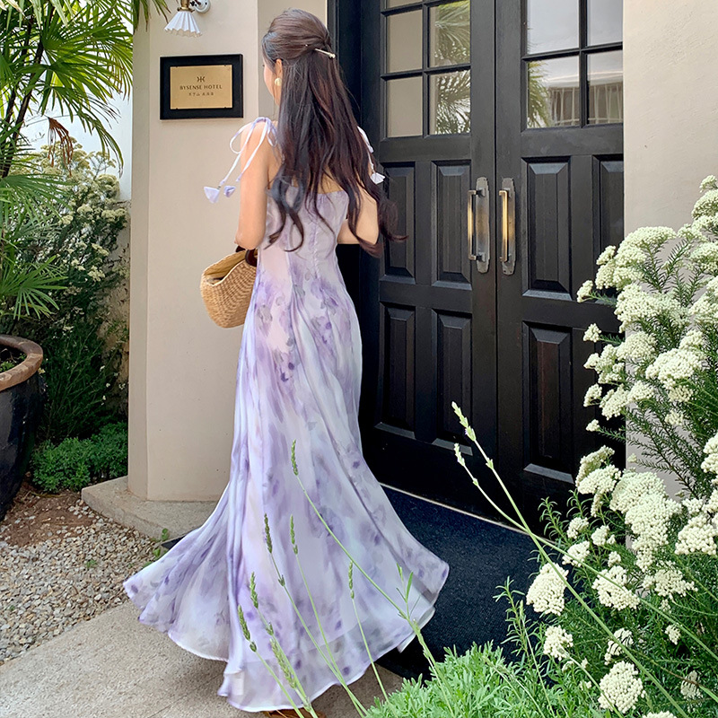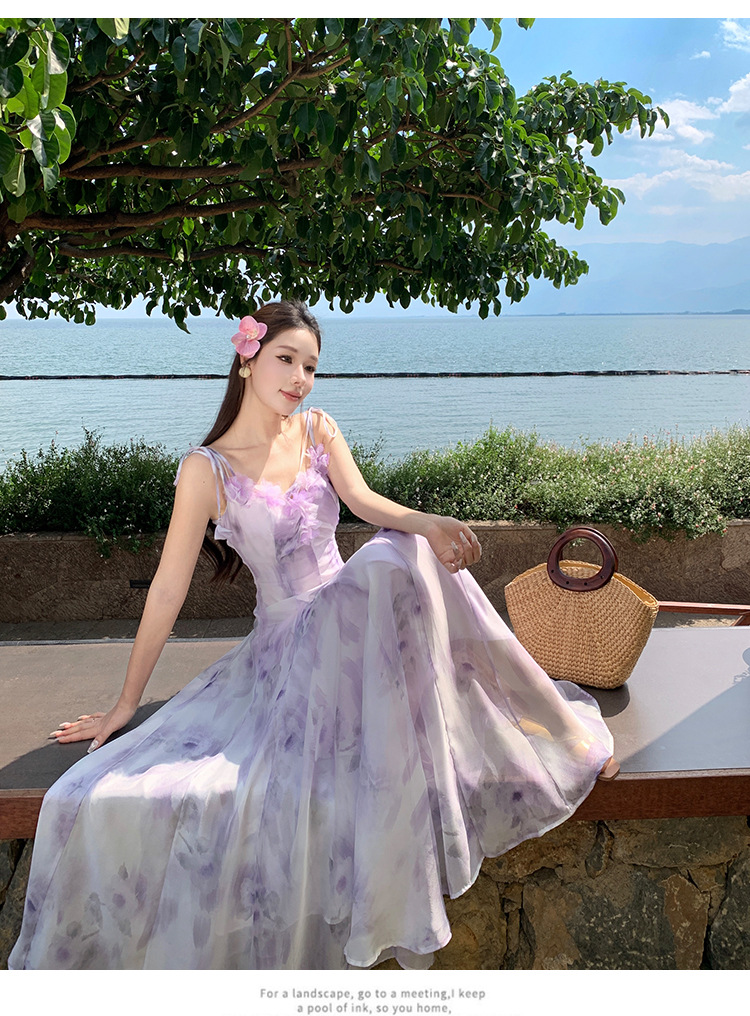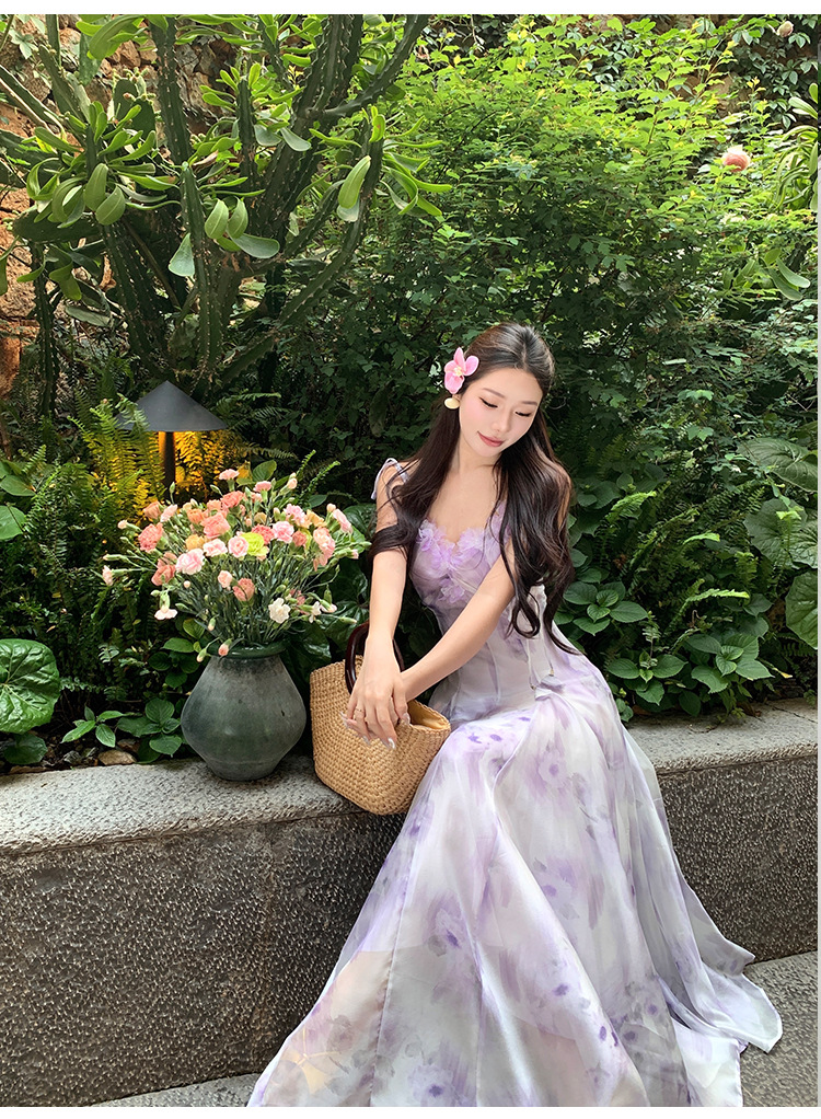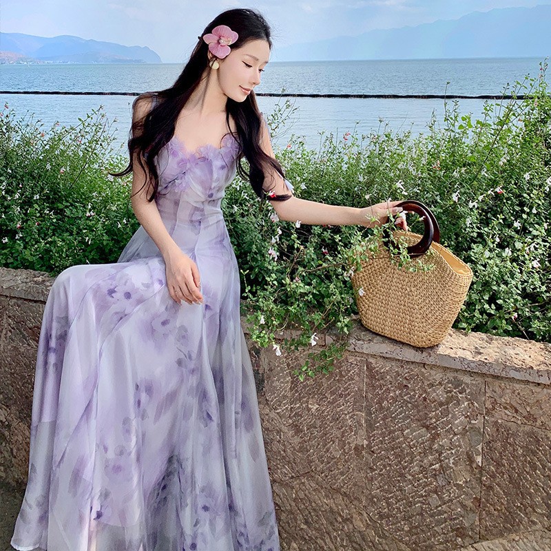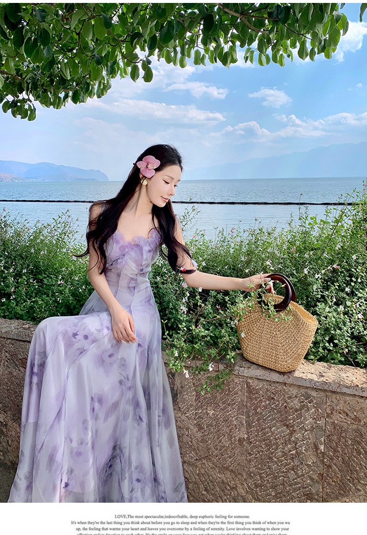 性感网红田园法式甜辣碎花公主雪纺收腰连衣裙女