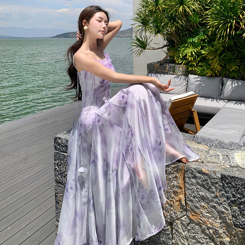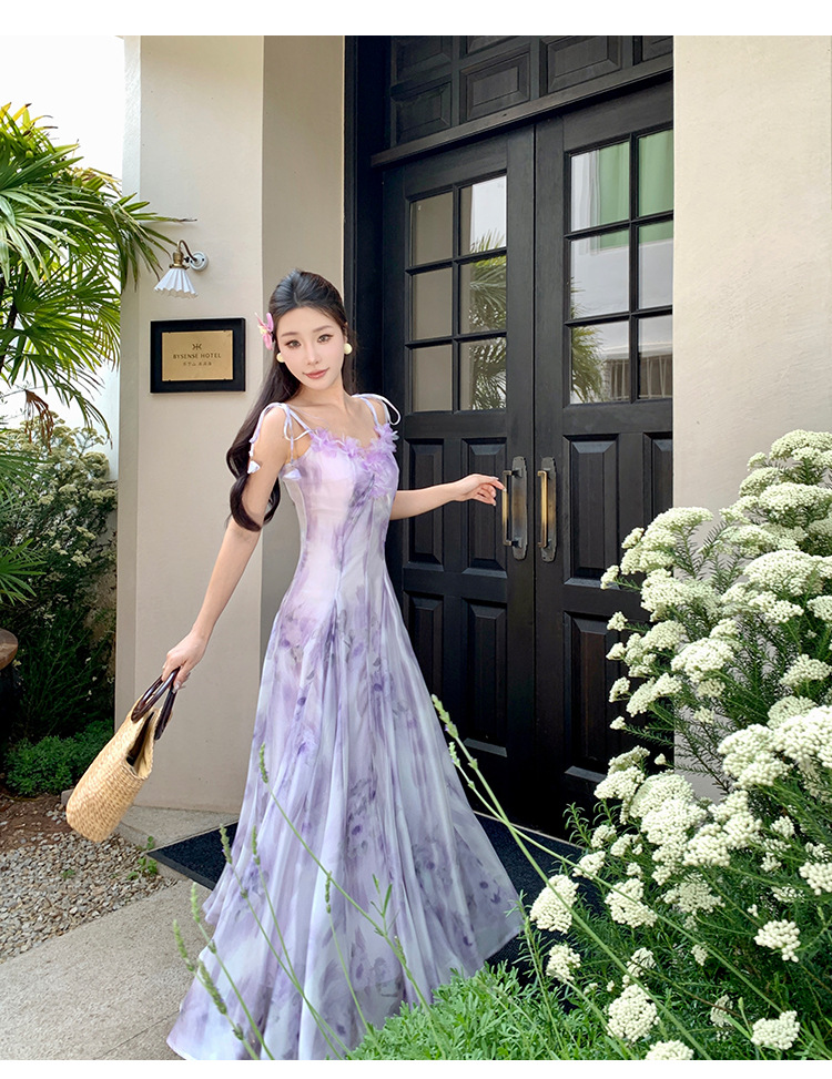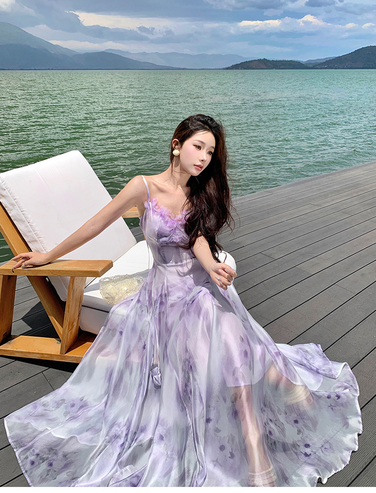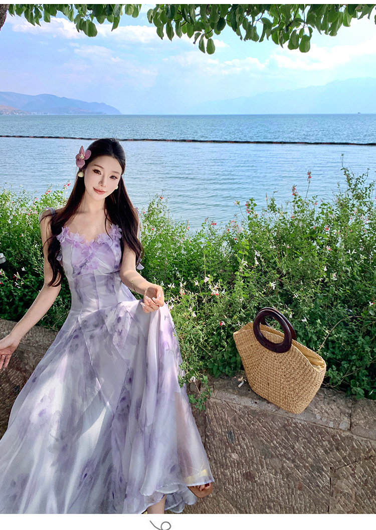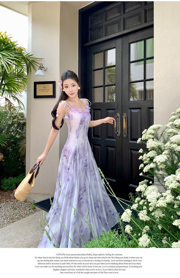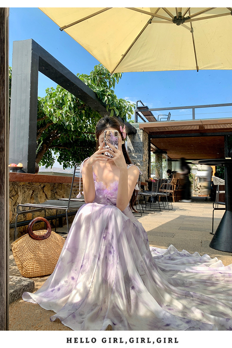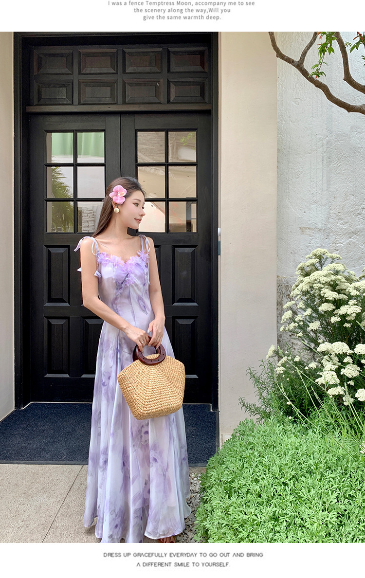 性感网红田园法式甜辣碎花公主雪纺收腰连衣裙女