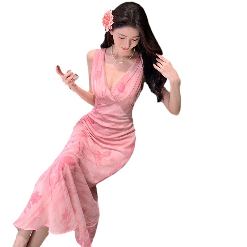 春装荷叶边蕾丝吊带连衣裙女夏季显瘦温柔气质度假裙搭配一套