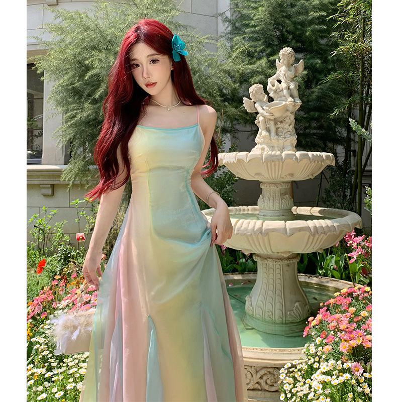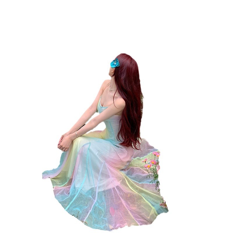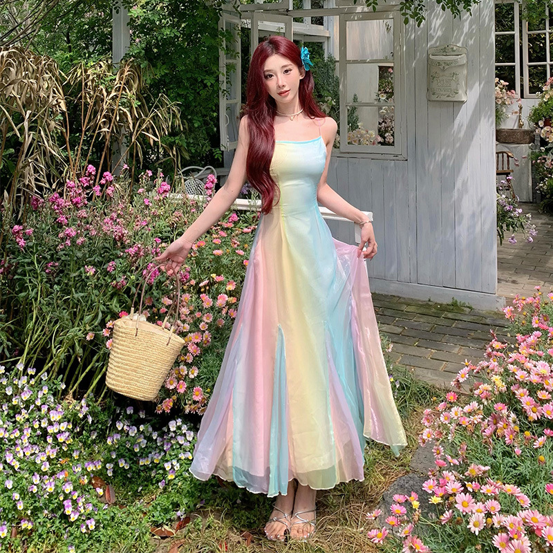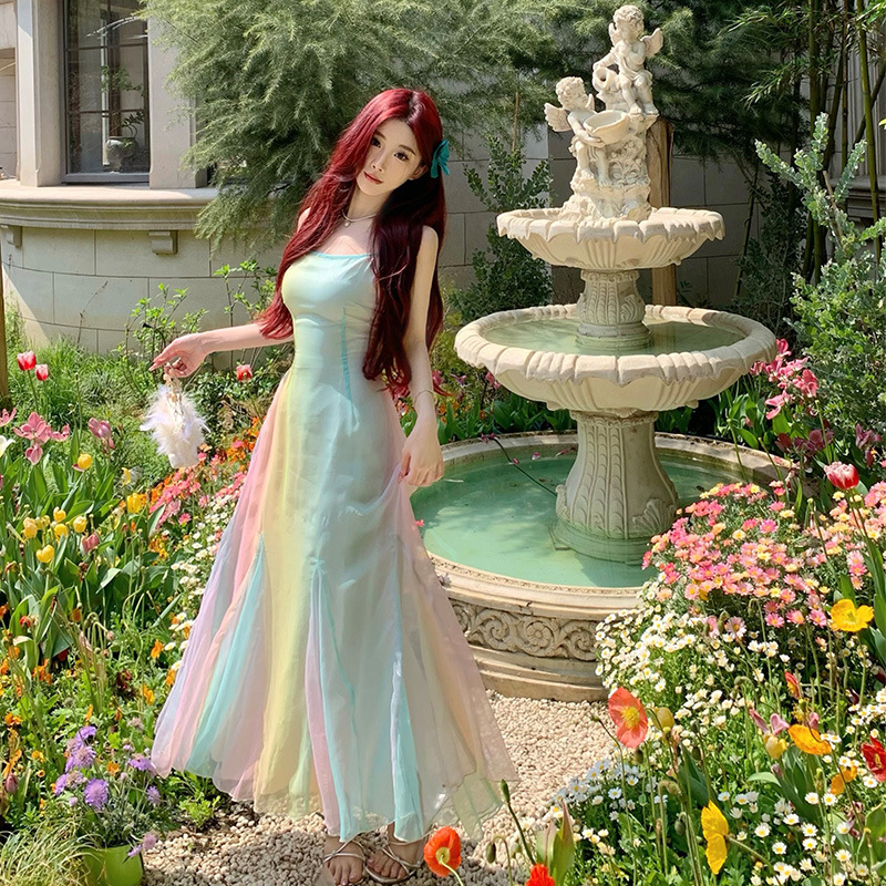 法式温柔风吊带连衣裙女夏季仙女裙小众海边度假沙滩长裙