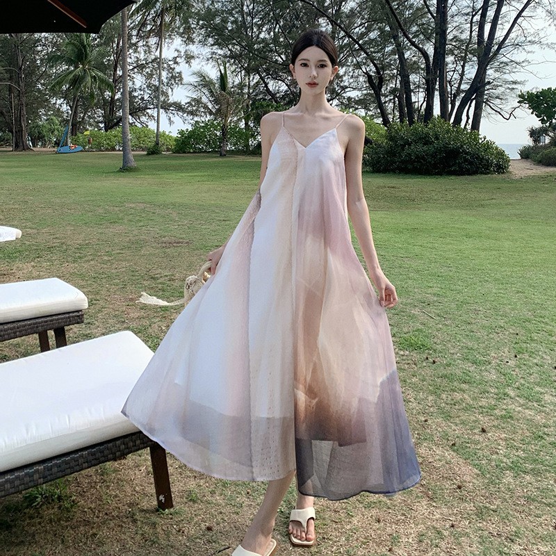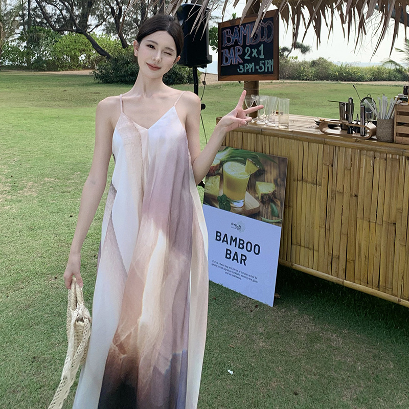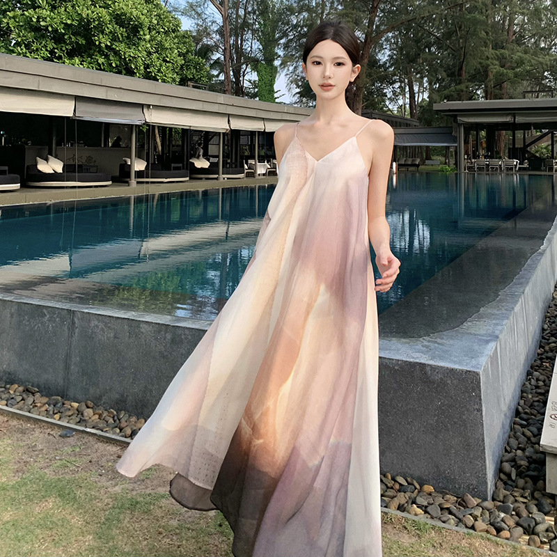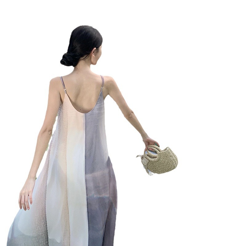 韩版假两件拼接连衣裙法式子女夏季新款小众设计收腰气质长裙