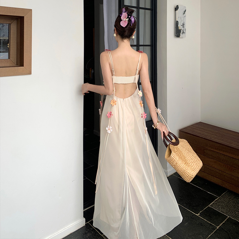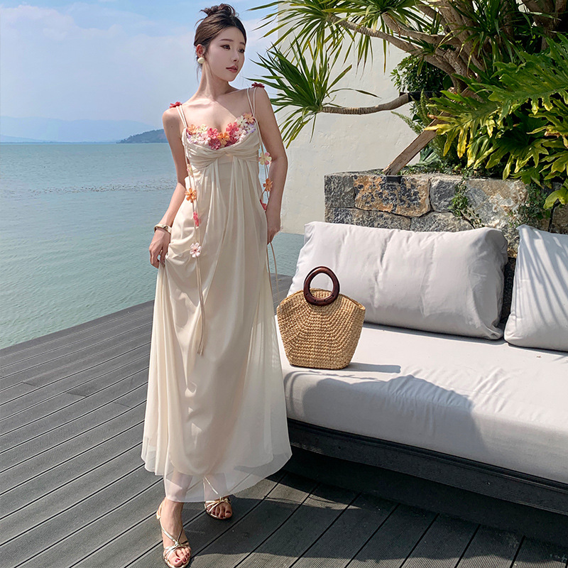 雾里看花醋酸吊带连衣长裙春夏高端精致度假仙女纱裙子
