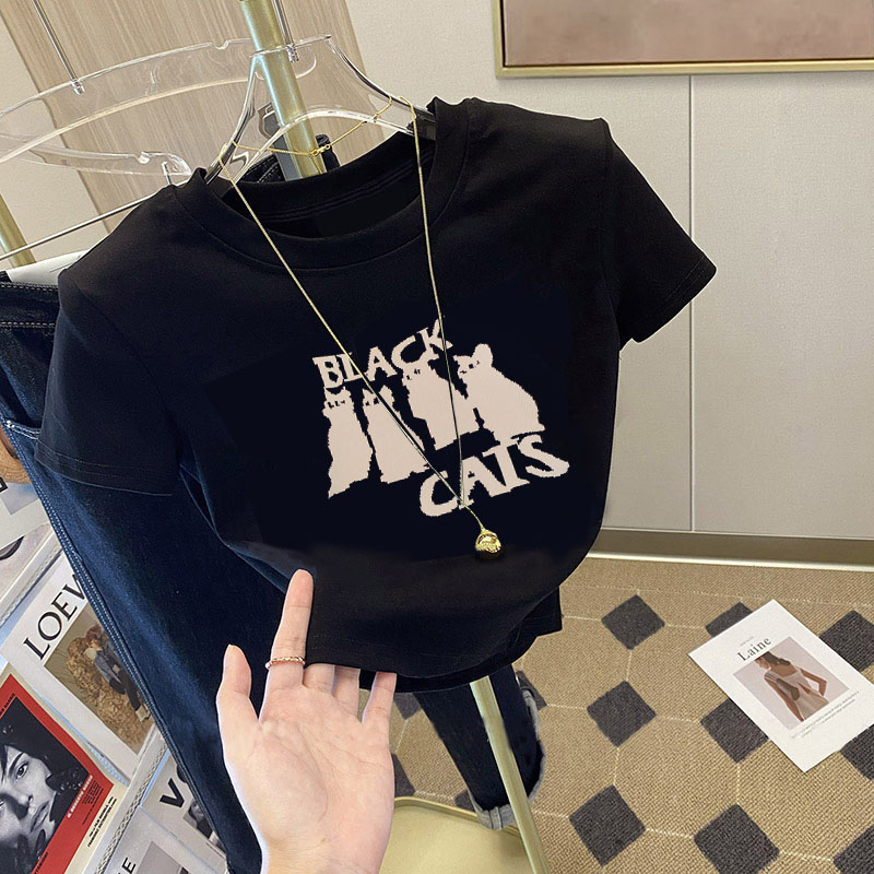 2025夏季新款短款纯棉短袖t恤女修身显瘦辣妹小个子时尚别致上衣
