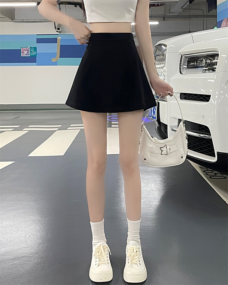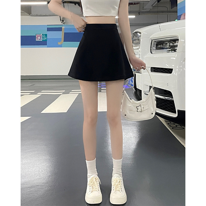 夏季小个子百搭A字后拉链短裙女高腰显瘦有内衬半身裙休闲运动裙