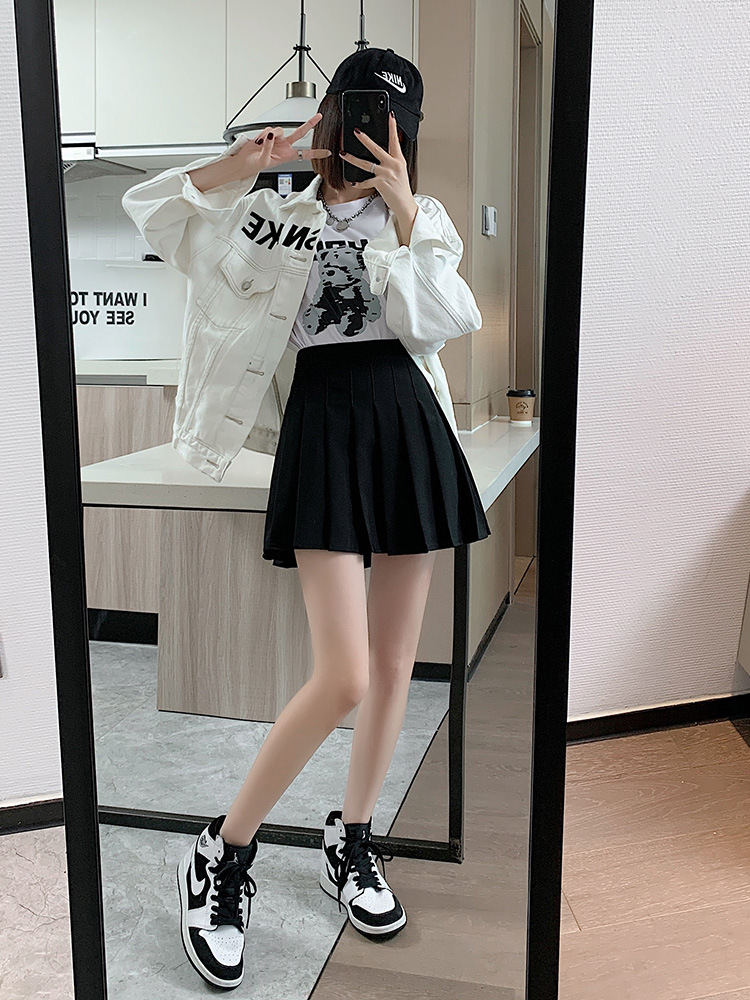 早秋小个子半身裙女春秋薄款JK百褶裙学生高腰显瘦百搭A字裙