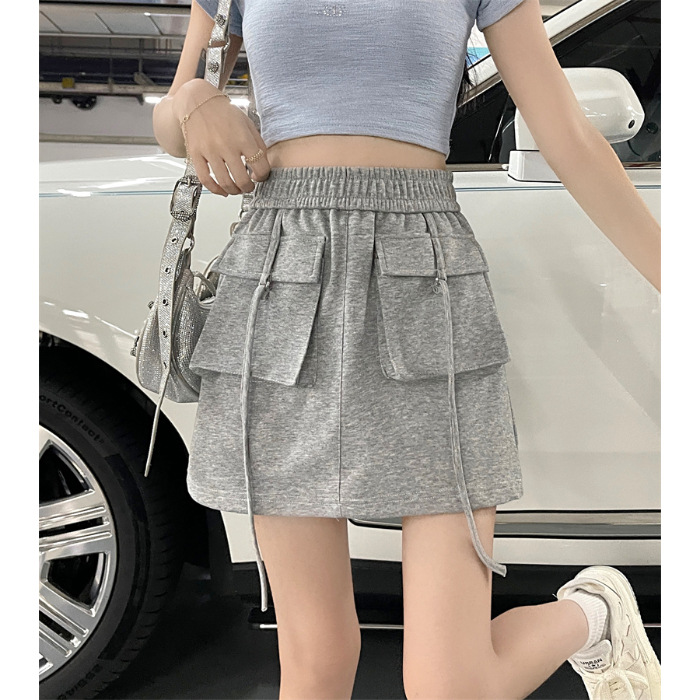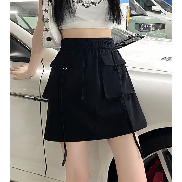 夏季小个子松紧腰复古半身裙女甜辣妹高级感显瘦有内衬A字短裙字