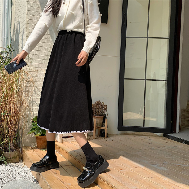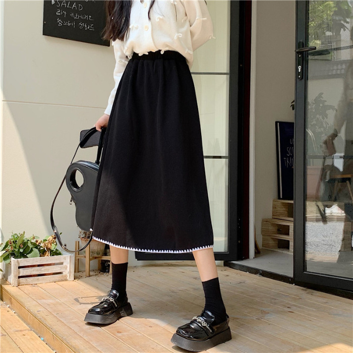小众设计感半身裙女春秋新款宽松松紧腰遮胯显瘦A字中长裙薄