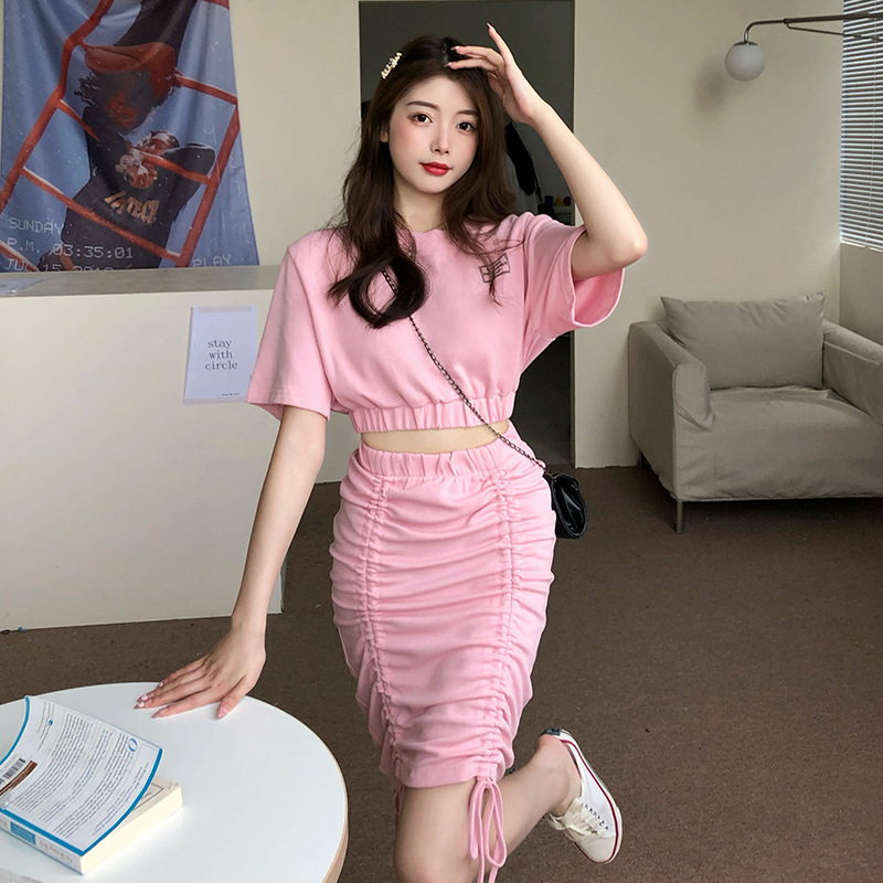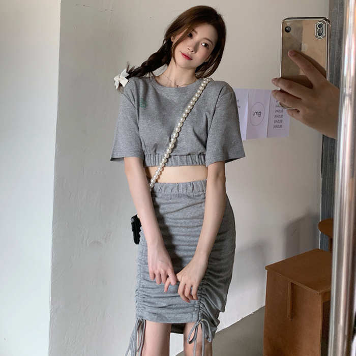 辣妹休闲运动套装夏季新款修身显身材个性时尚设计感半身裙两件套