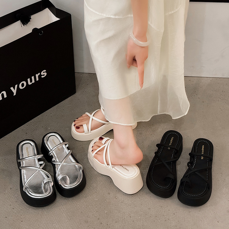 厚底松糕黑色凉拖鞋春夏季新款女外穿时尚法式沙滩度假罗马凉