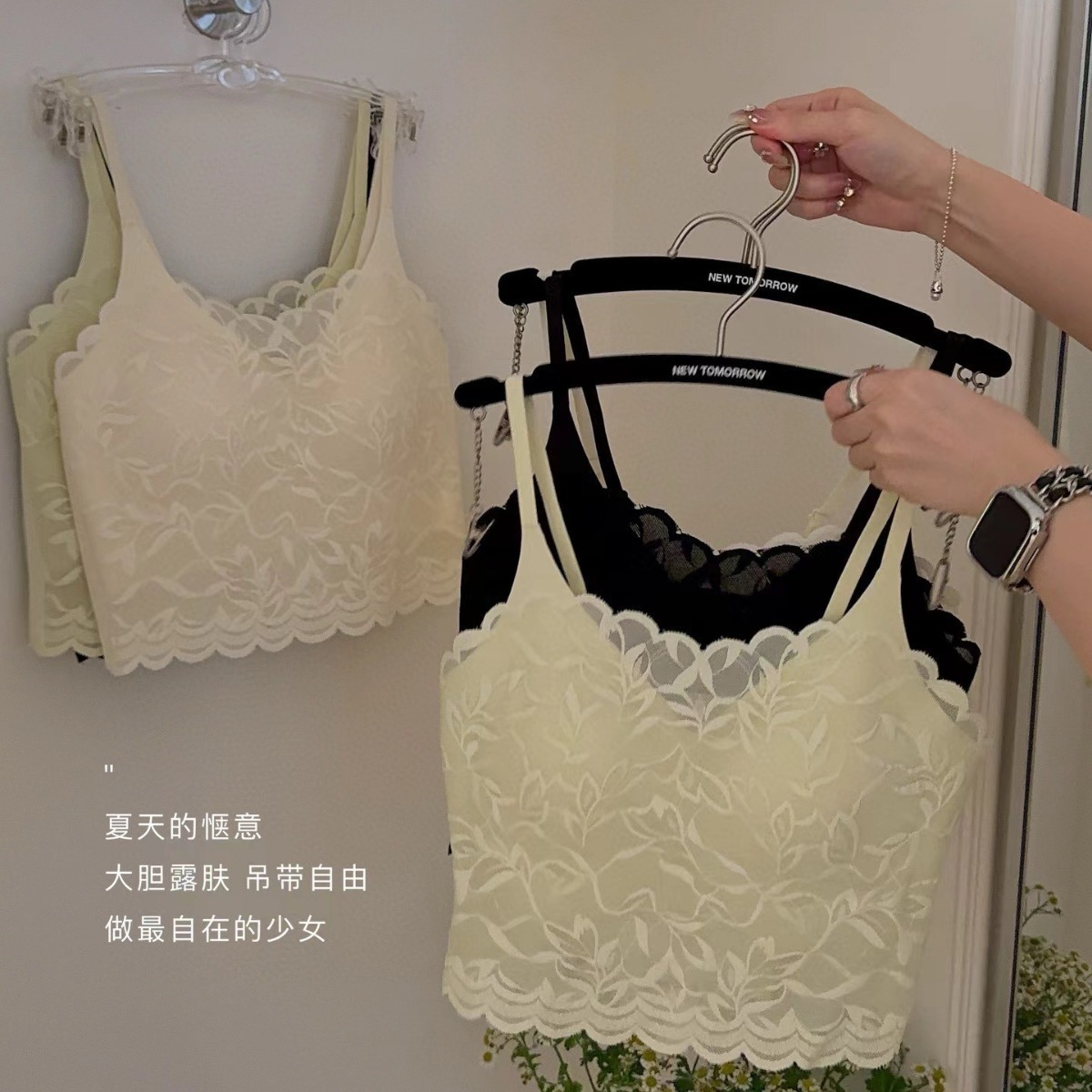 002#小清新柳枝叶蕾丝吊带女无痕透气亲肤带胸垫百搭可外穿背心