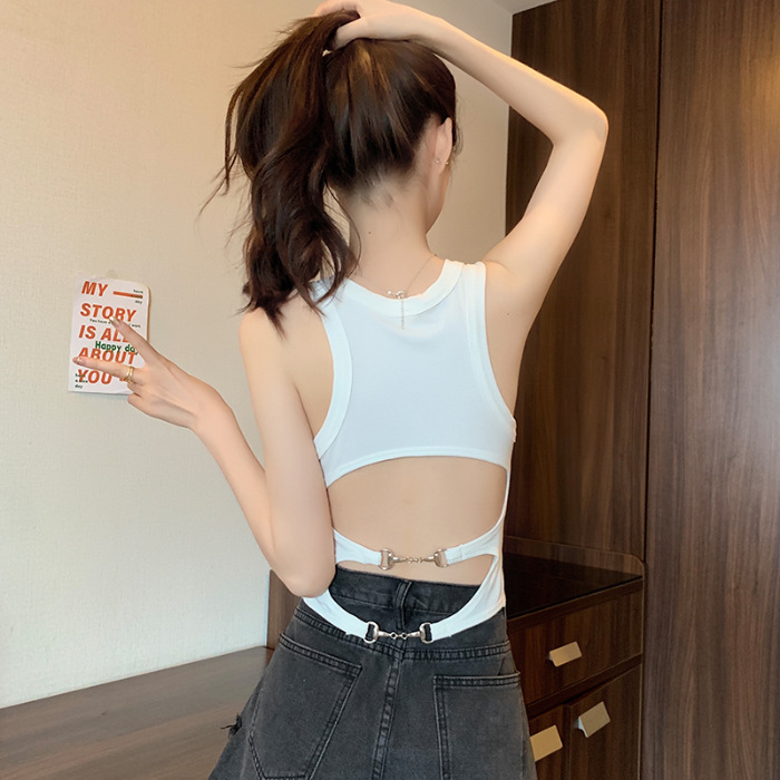 夏季甜辣妹美背带胸垫外穿背心女设计感内搭工字运动露背挂脖上衣