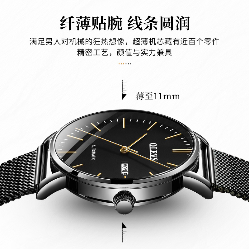 欧利时品牌手表工厂全自动机械表休闲薄款防水轻奢男士手表男表