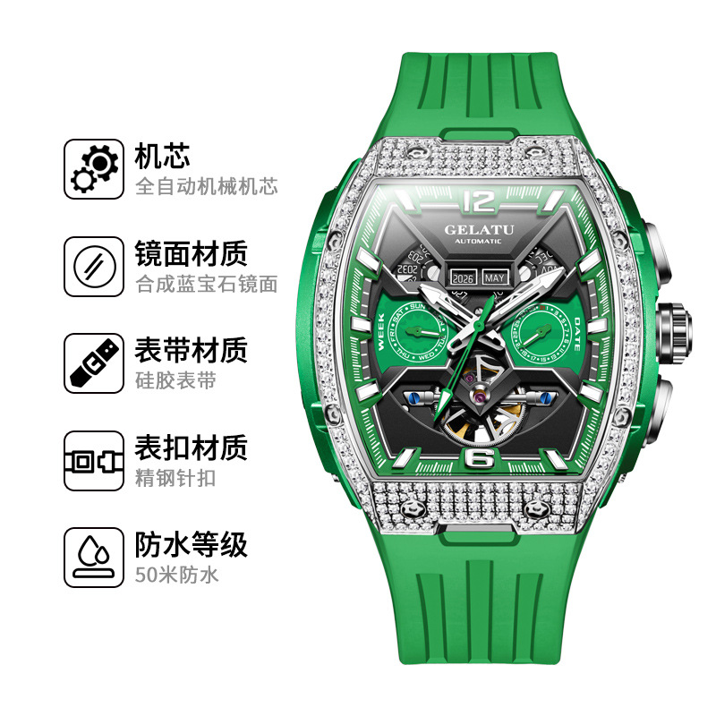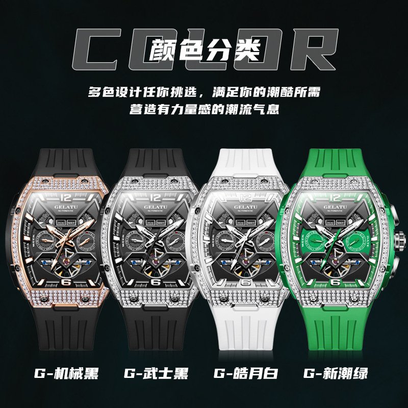格拉图品牌手表机械表酒桶形大表盘潮流时尚机械手表男士