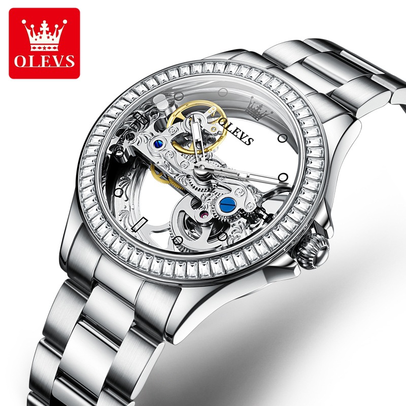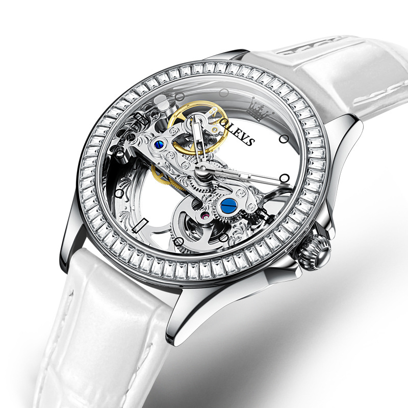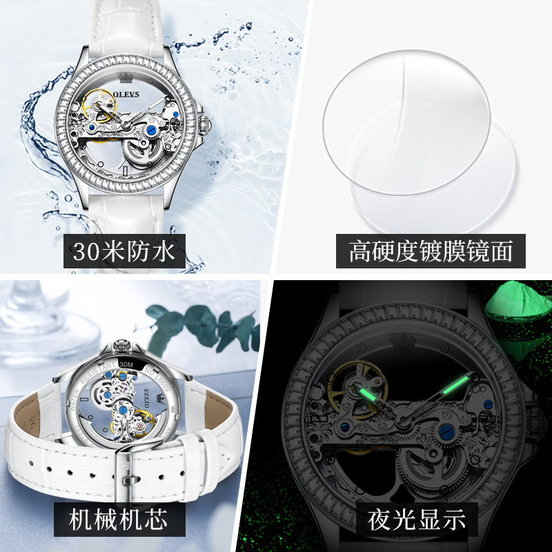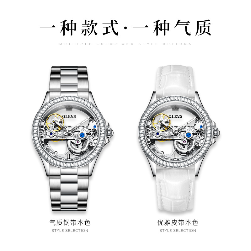 新款欧利时品牌手表全自动机械表镂空透视气质镶钻女士手表女