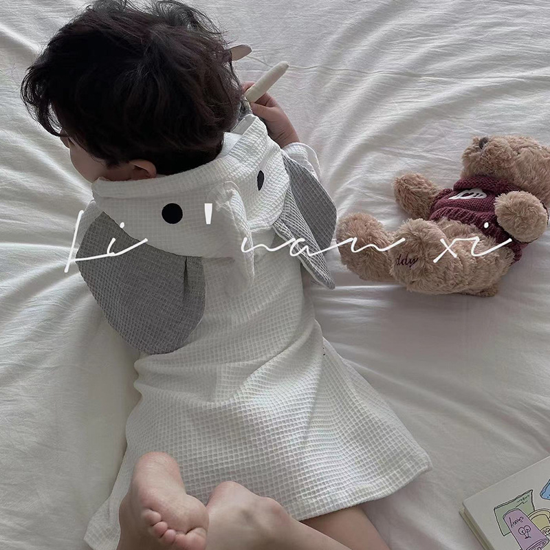 24春季新款儿童家居服浴袍华夫格宝宝居家睡袍可爱大象宝宝睡衣