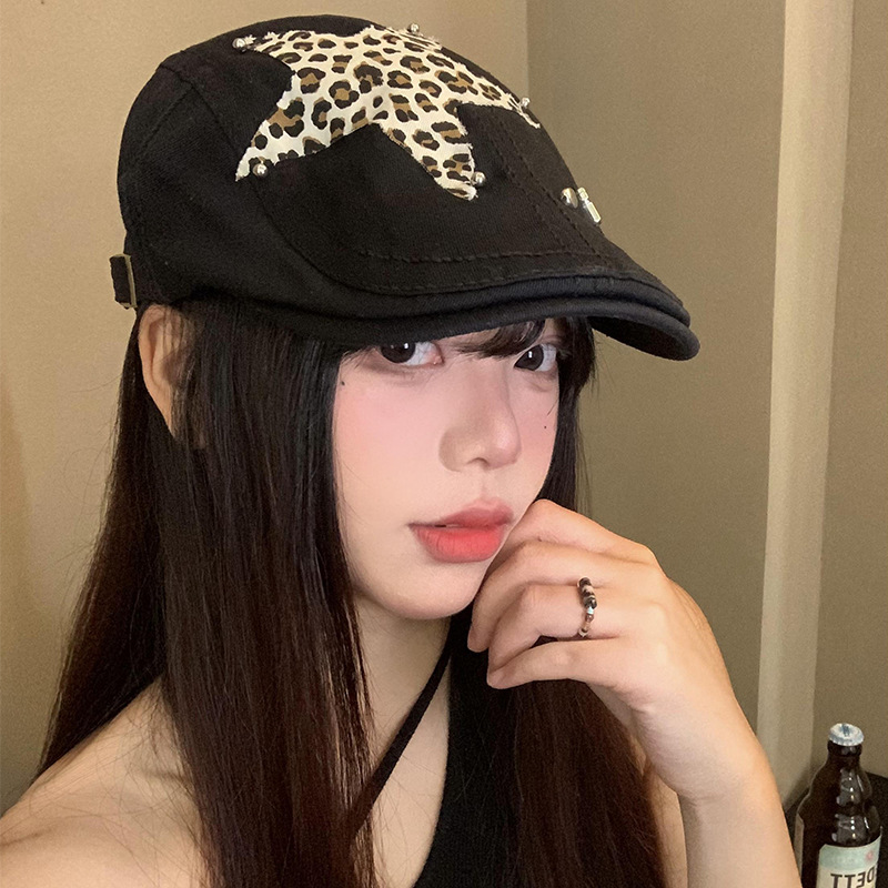 贝雷帽女秋冬爱心金属标毛呢保暖帽子ins小红书网红显脸小画家帽