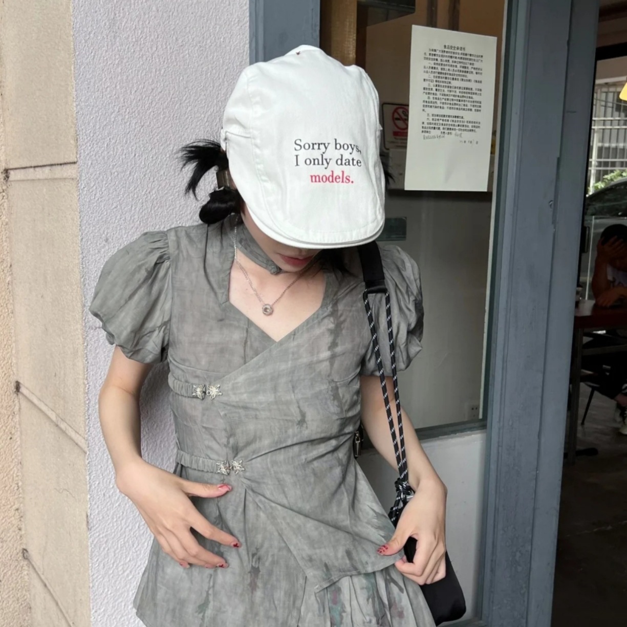 复古百搭甜酷风水洗做旧牛仔帽子贝雷帽显脸小前进帽春夏画家帽